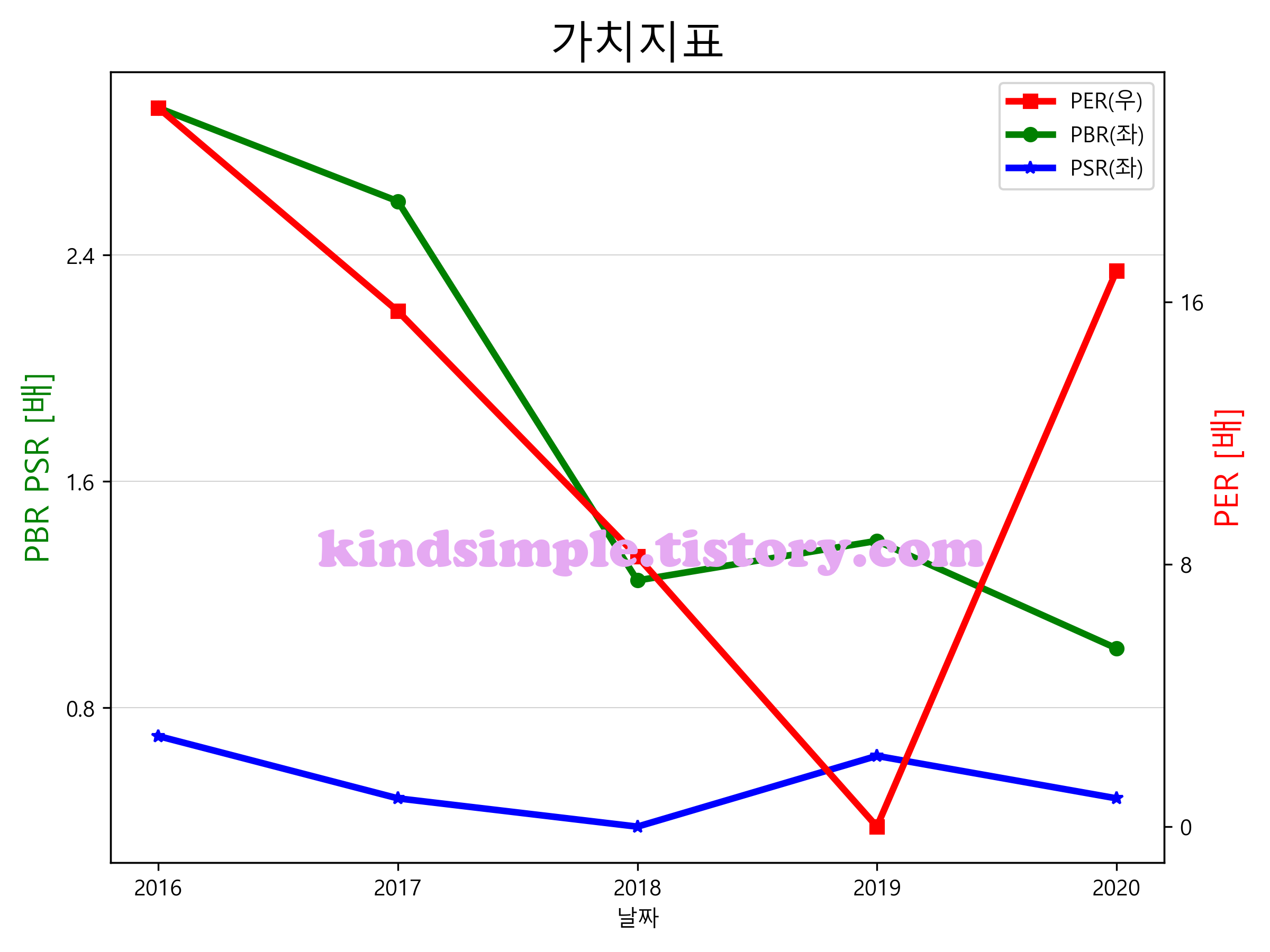 - PER : 15.75배, 동일업종 PER : 83.61배