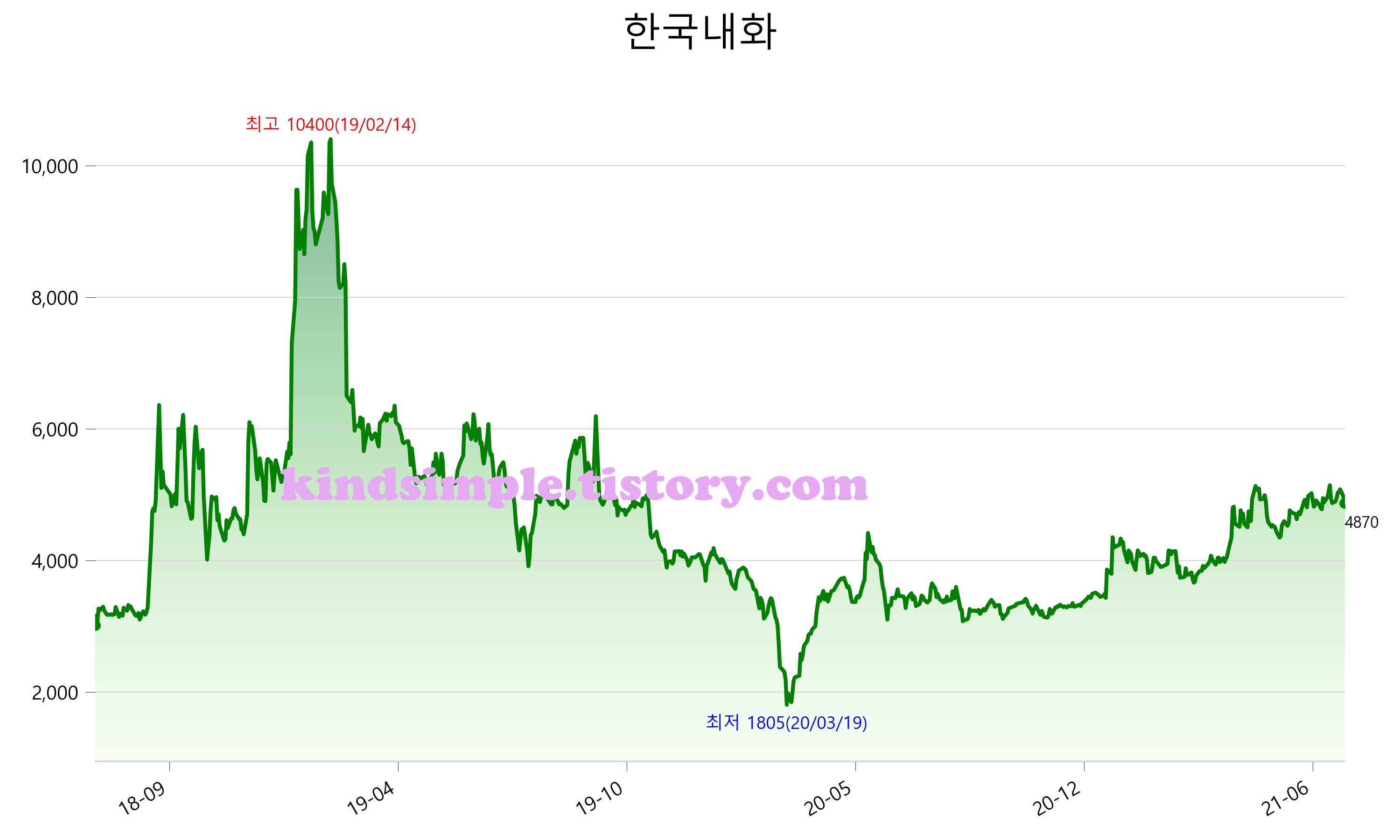 7월 20일 기준 주가는 4,870원 입니다. 아래는 최근 3년간의 주가흐름입니다.