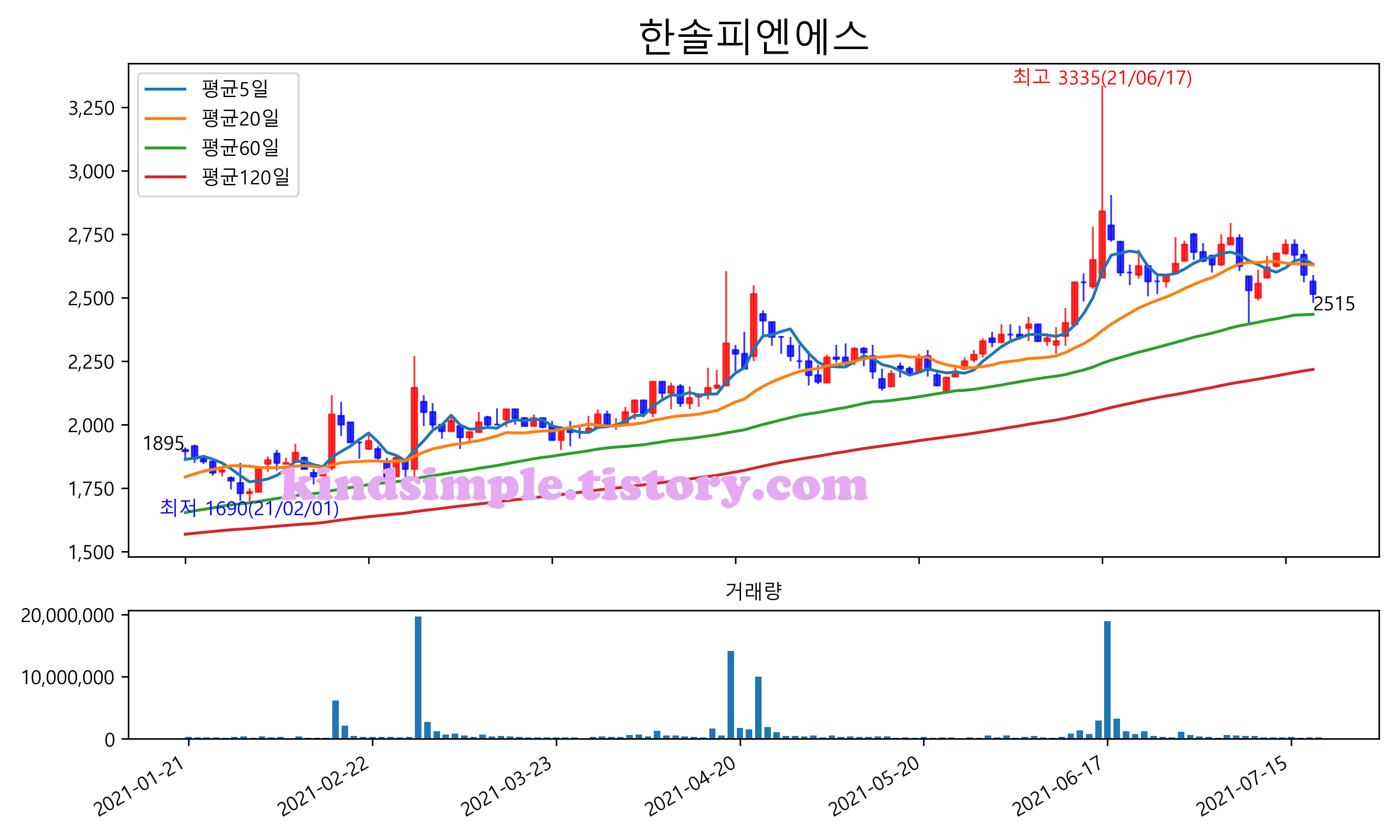 7월 20일 기준 주가는 2,515원 입니다. 아래는 최근 3년간의 주가흐름입니다.