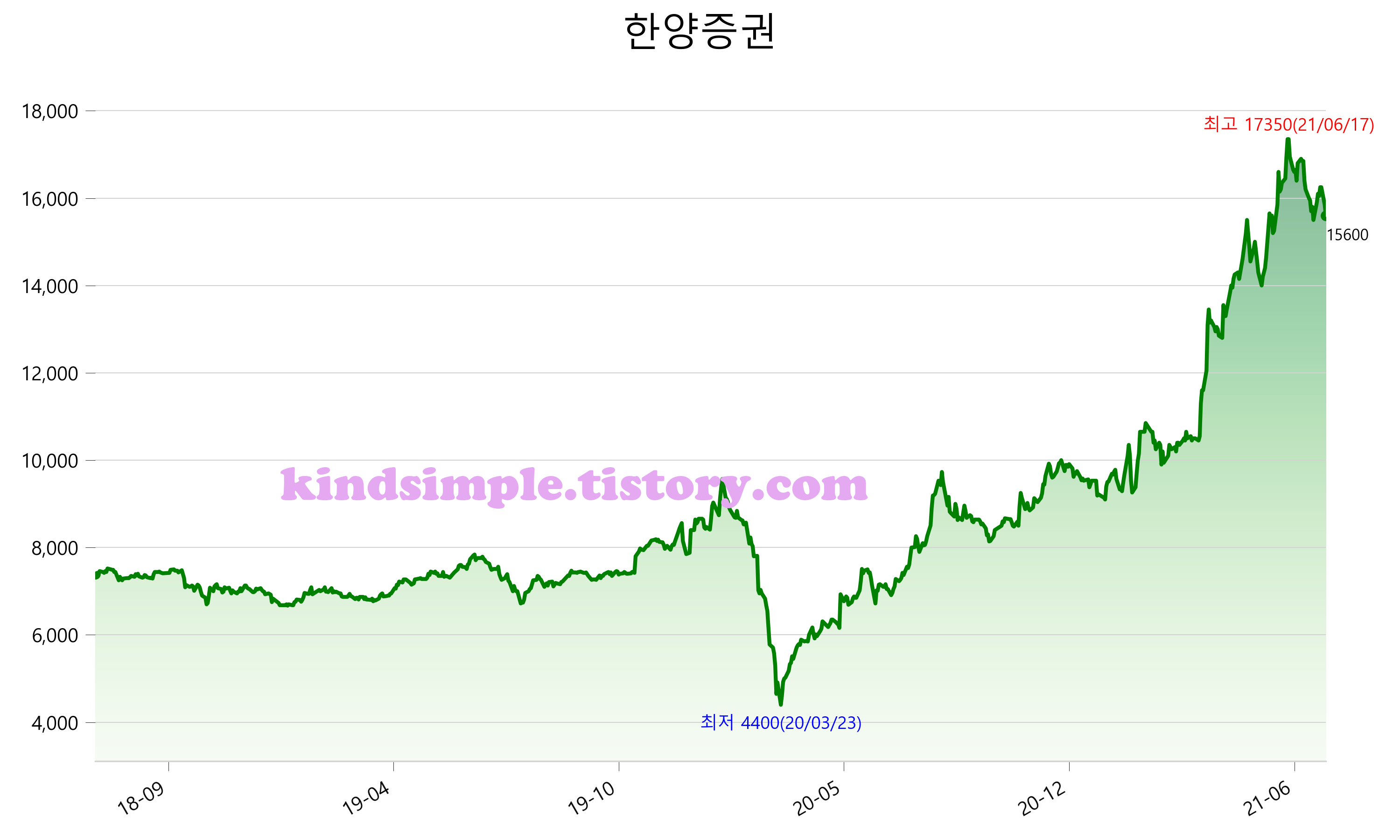 7월 20일 기준 주가는 15,600원 입니다. 아래는 최근 3년간의 주가흐름입니다.
