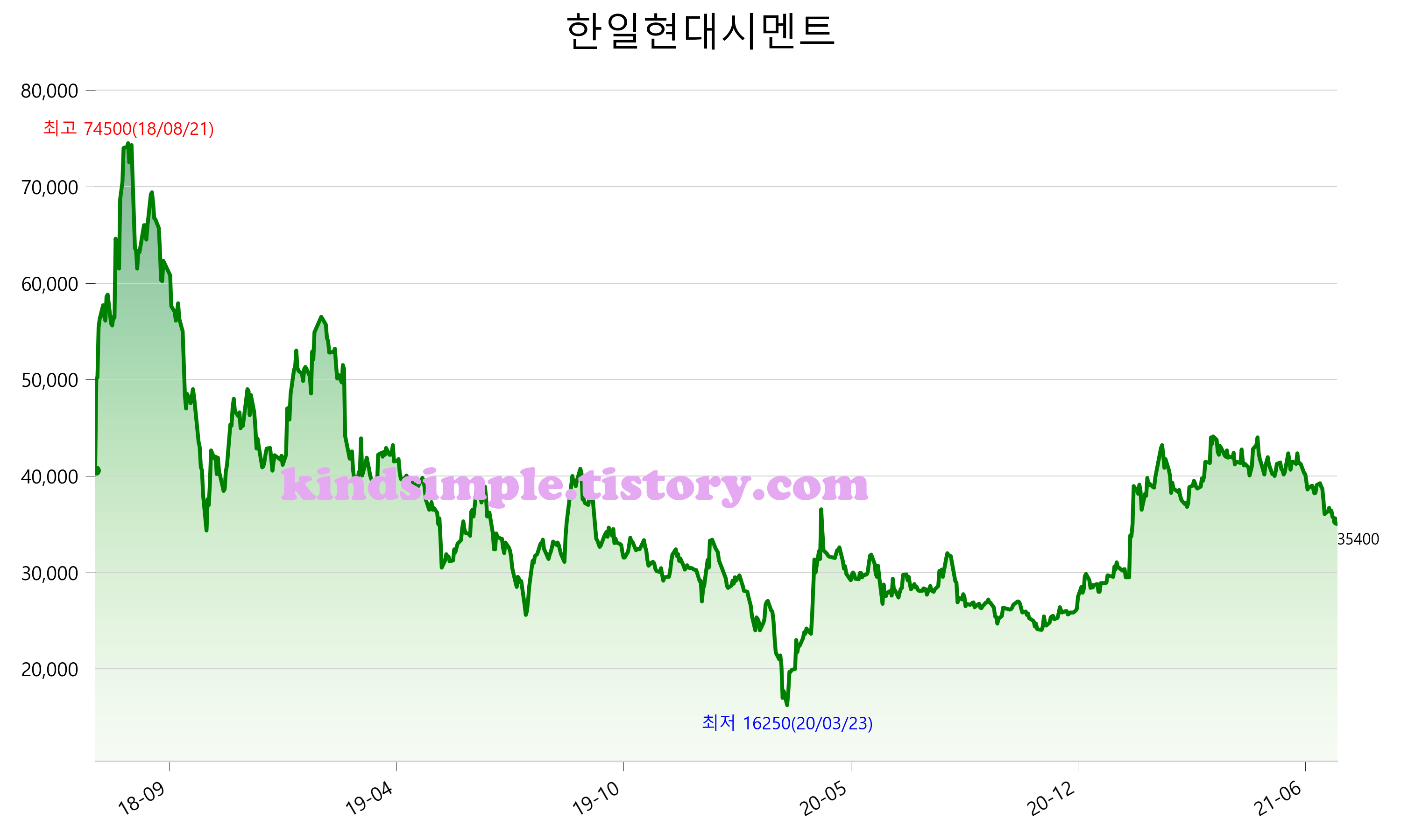 7월 20일 기준 주가는 35,400원 입니다. 아래는 최근 3년간의 주가흐름입니다.