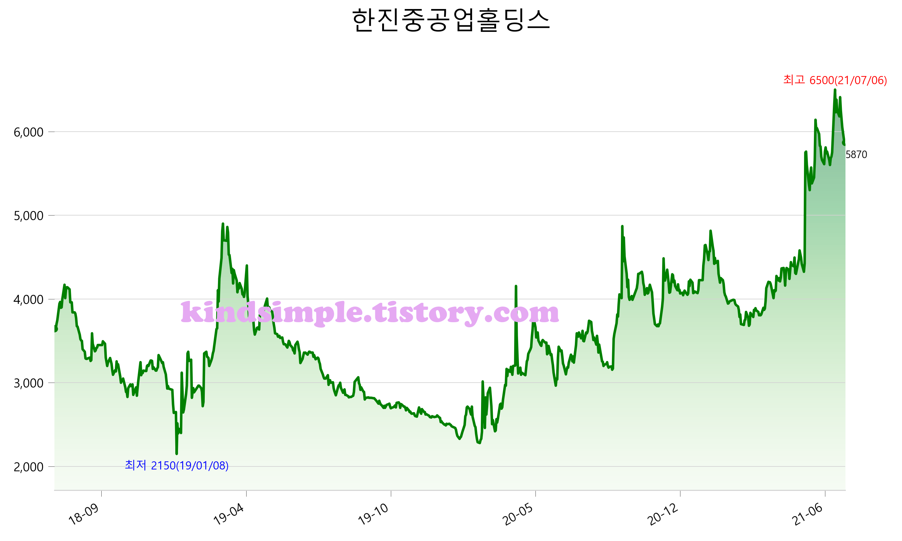 7월 20일 기준 주가는 5,870원 입니다. 아래는 최근 3년간의 주가흐름입니다.