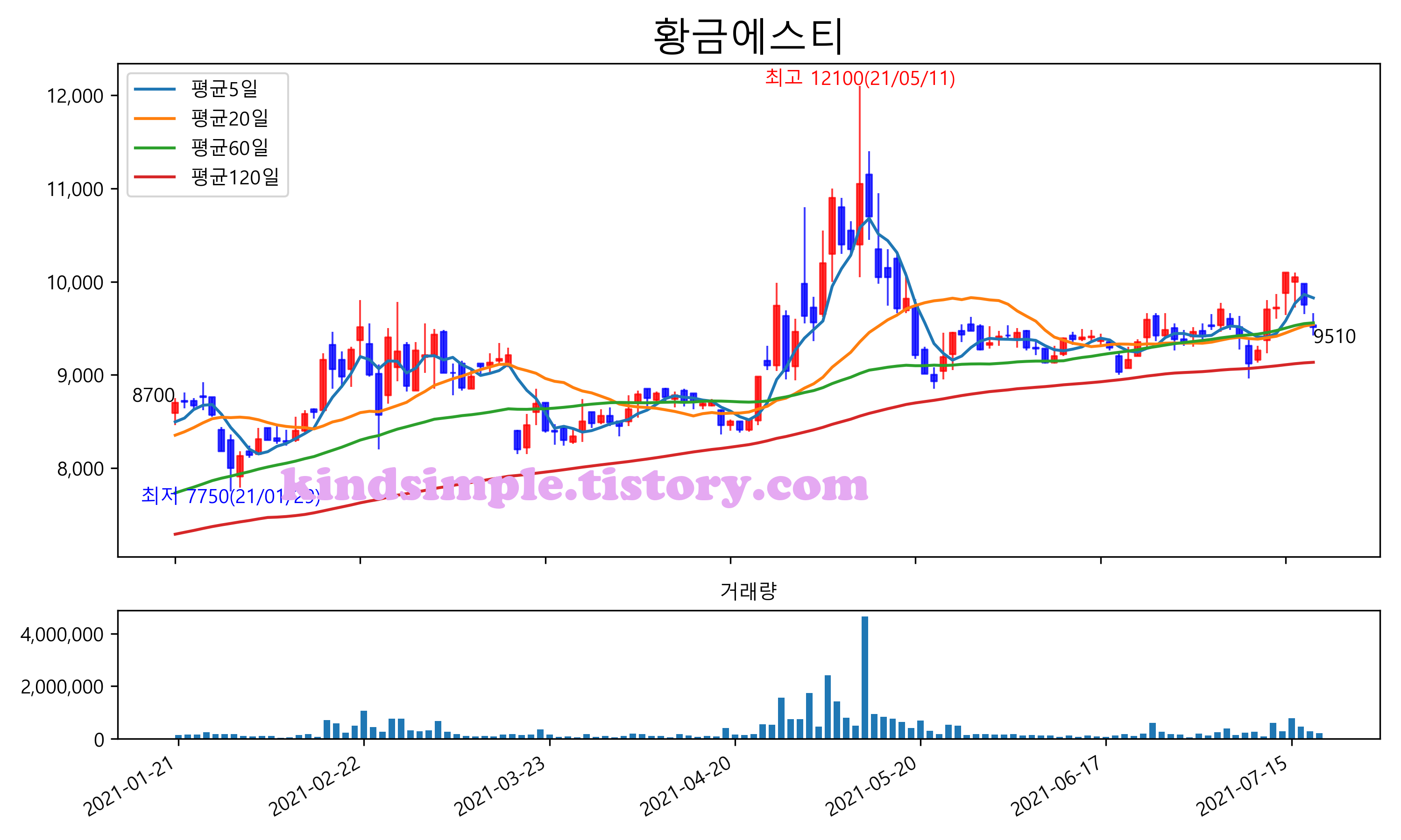 최근 6개월간 캔들차트 및 이동평균선입니다.