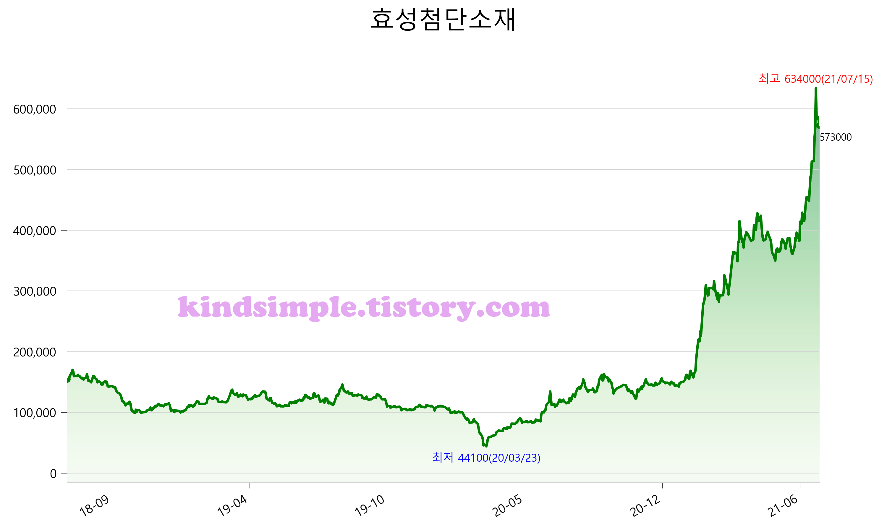 7월 20일 기준 주가는 573,000원 입니다. 아래는 최근 3년간의 주가흐름입니다.