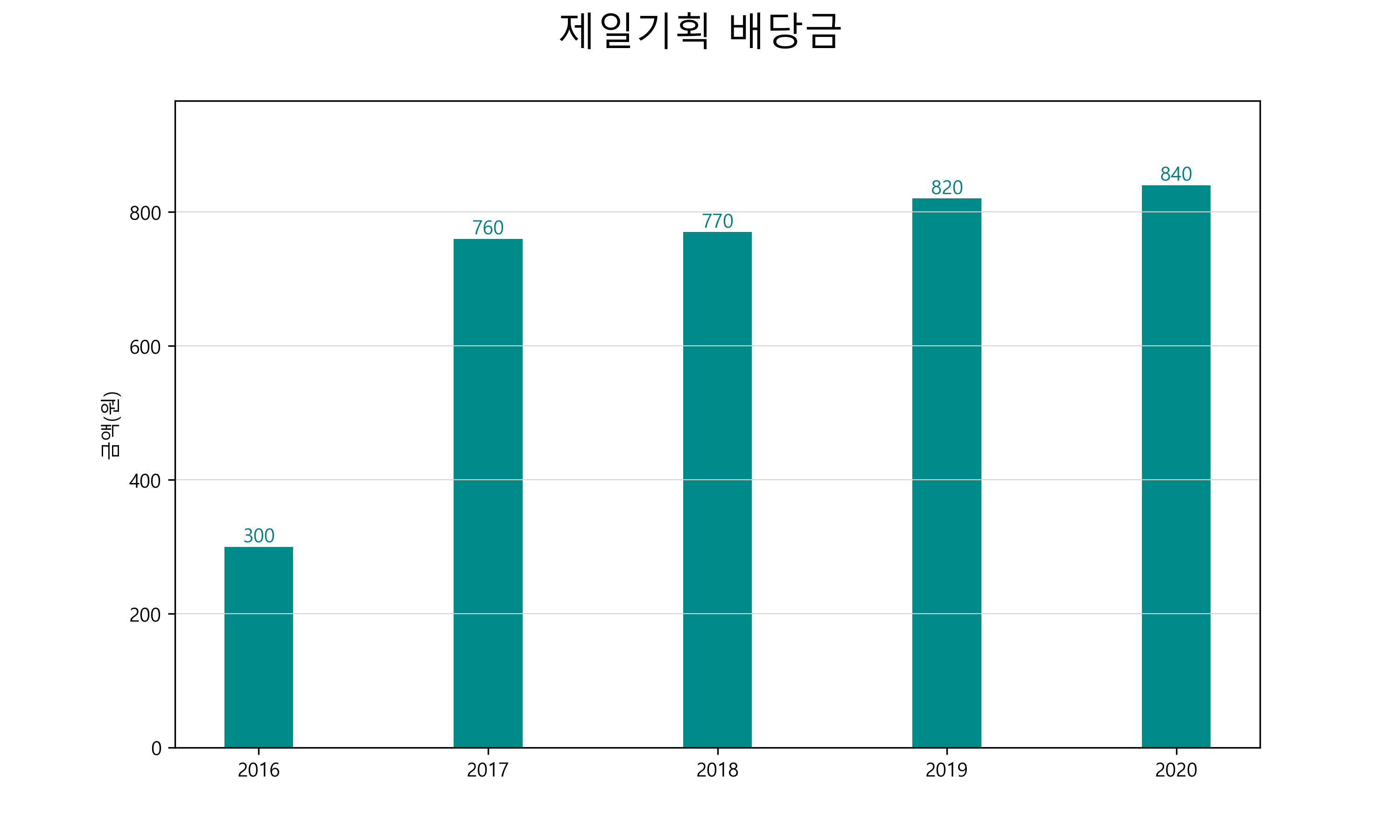 | 배당금 | 300 | 760 | 770 | 820 | 840 |