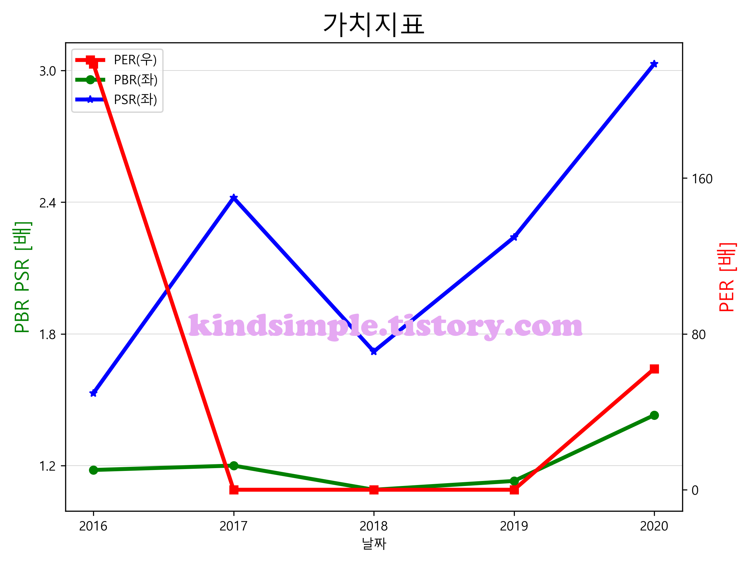- PER : 312.73배, 동일업종 PER : 46.34배
