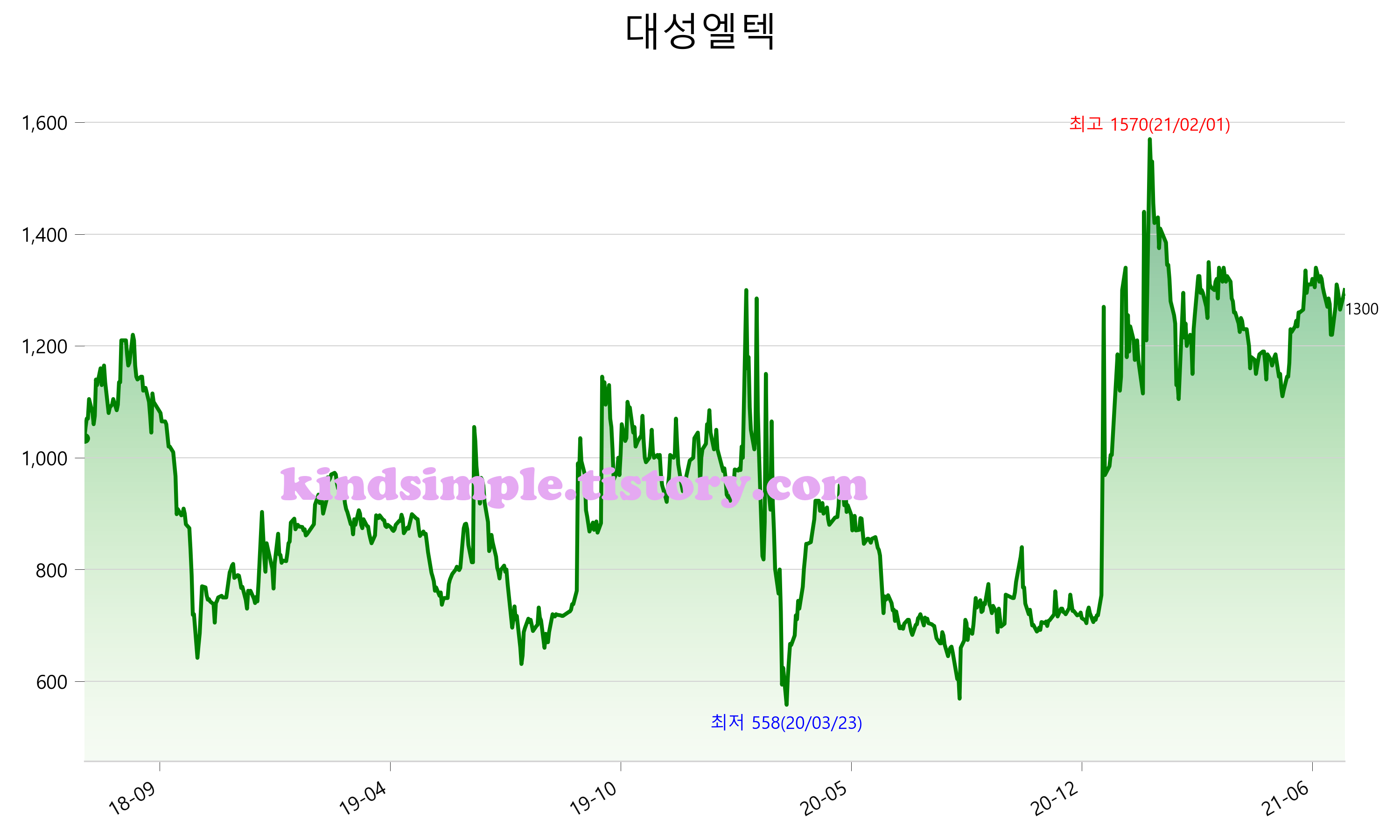 7월 21일 기준 주가는 1,300원 입니다. 아래는 최근 3년간의 주가흐름입니다.