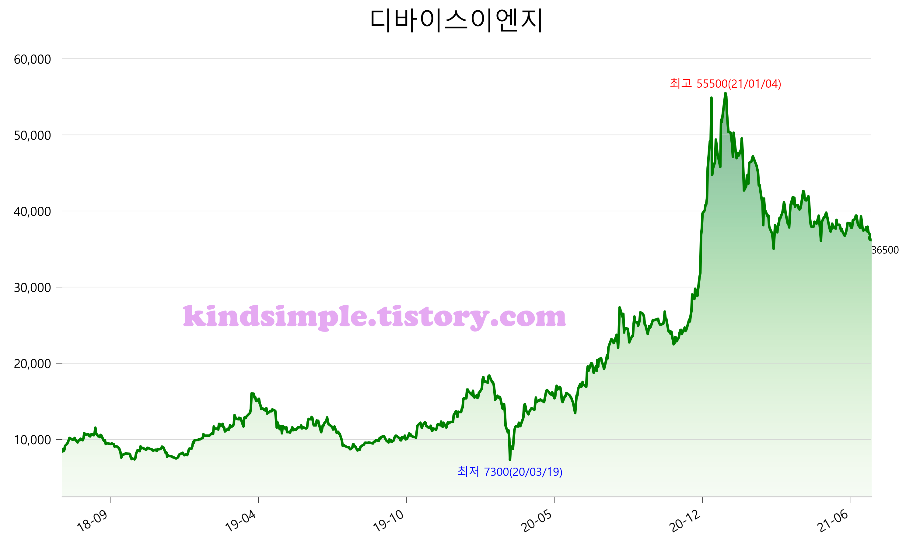 7월 21일 기준 주가는 36,500원 입니다. 아래는 최근 3년간의 주가흐름입니다.