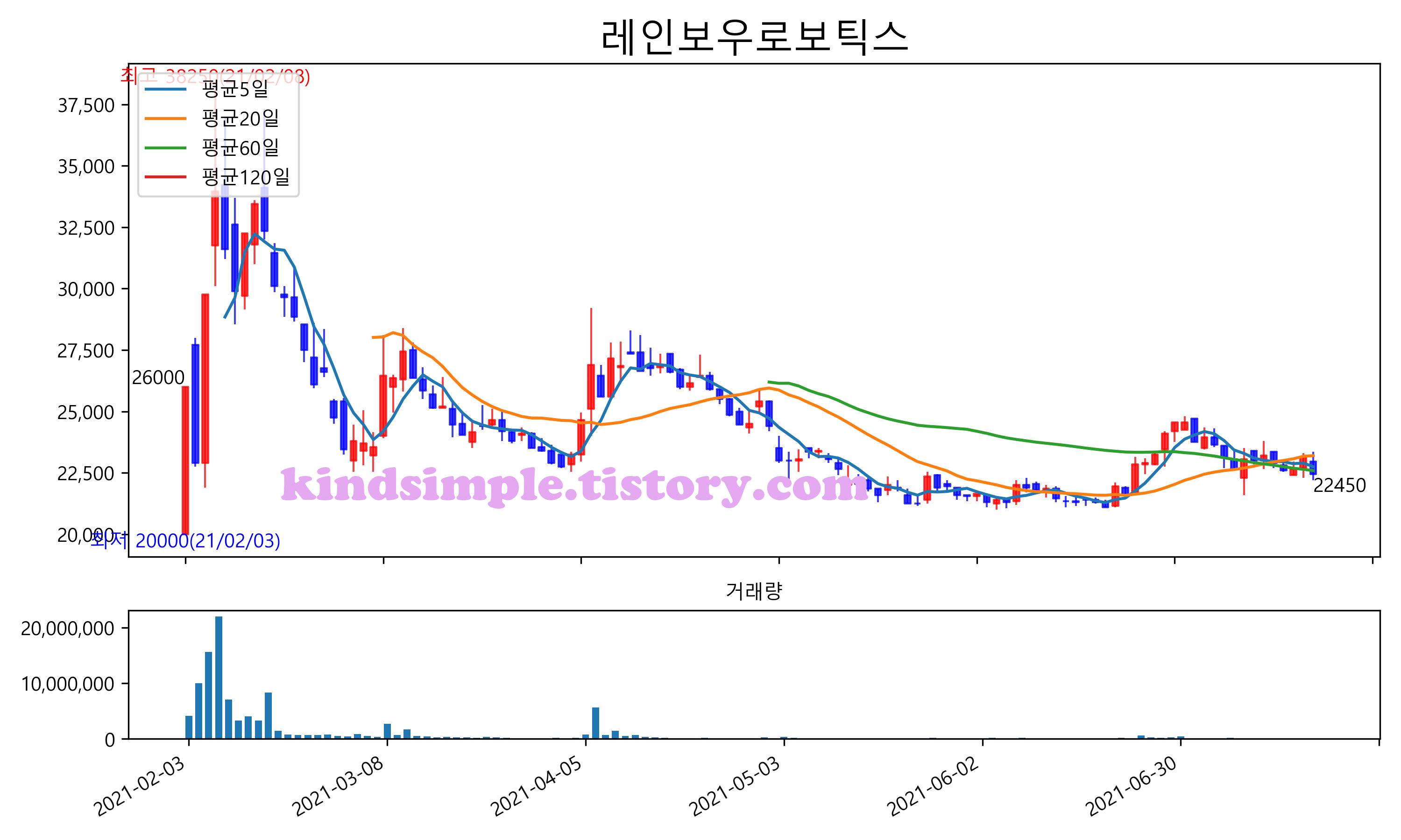 최근 6개월간 캔들차트 및 이동평균선입니다.