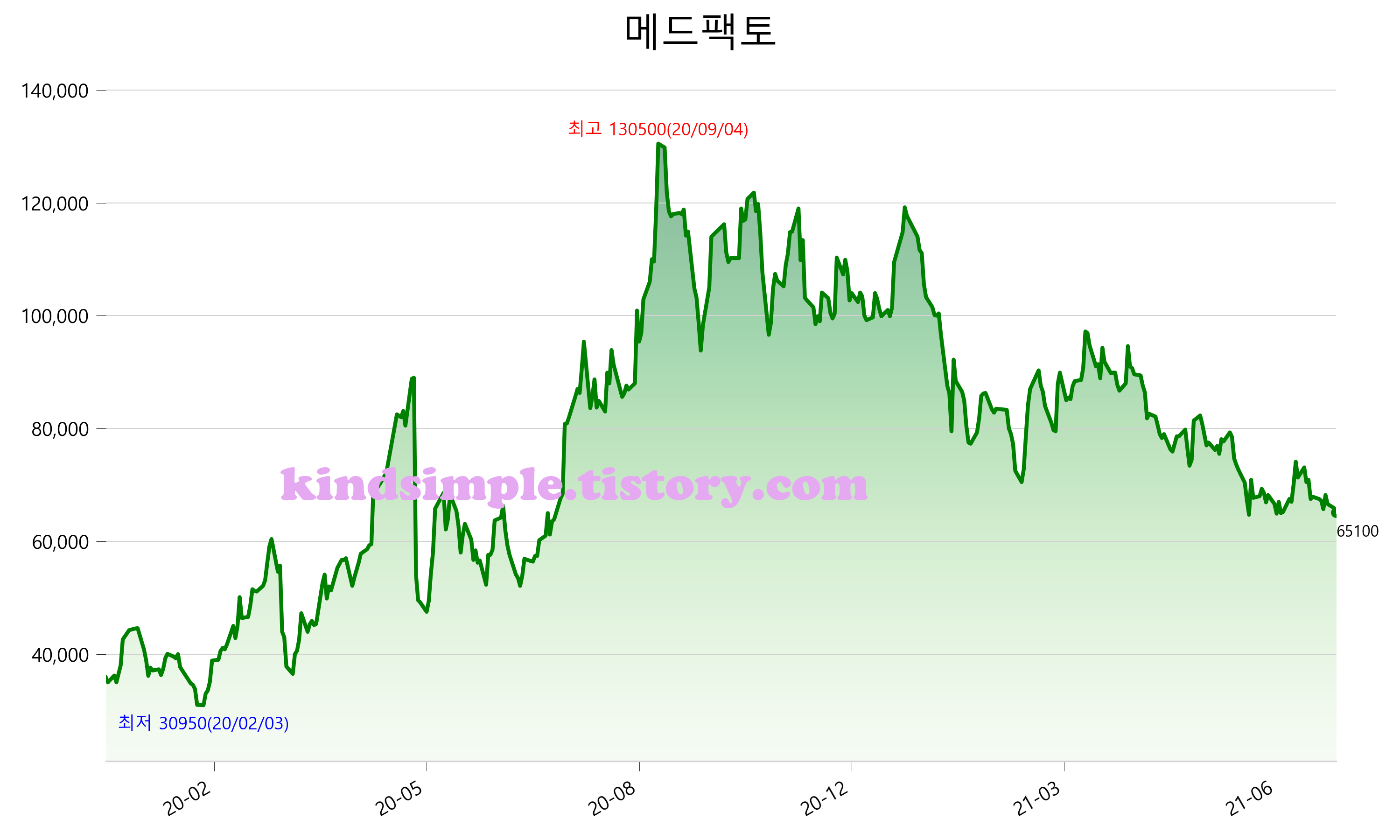 7월 21일 기준 주가는 65,100원 입니다. 아래는 최근 3년간의 주가흐름입니다.