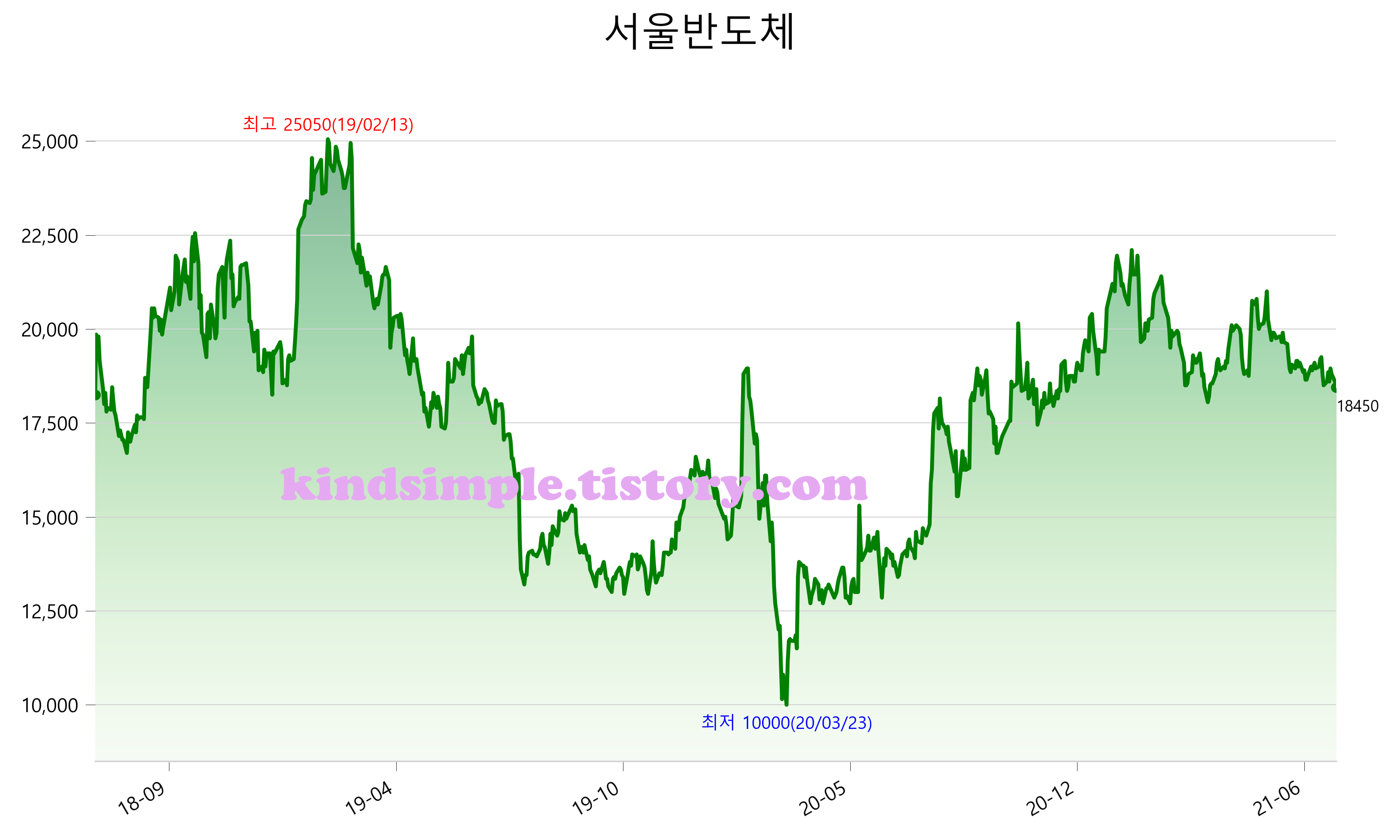 7월 21일 기준 주가는 18,450원 입니다. 아래는 최근 3년간의 주가흐름입니다.