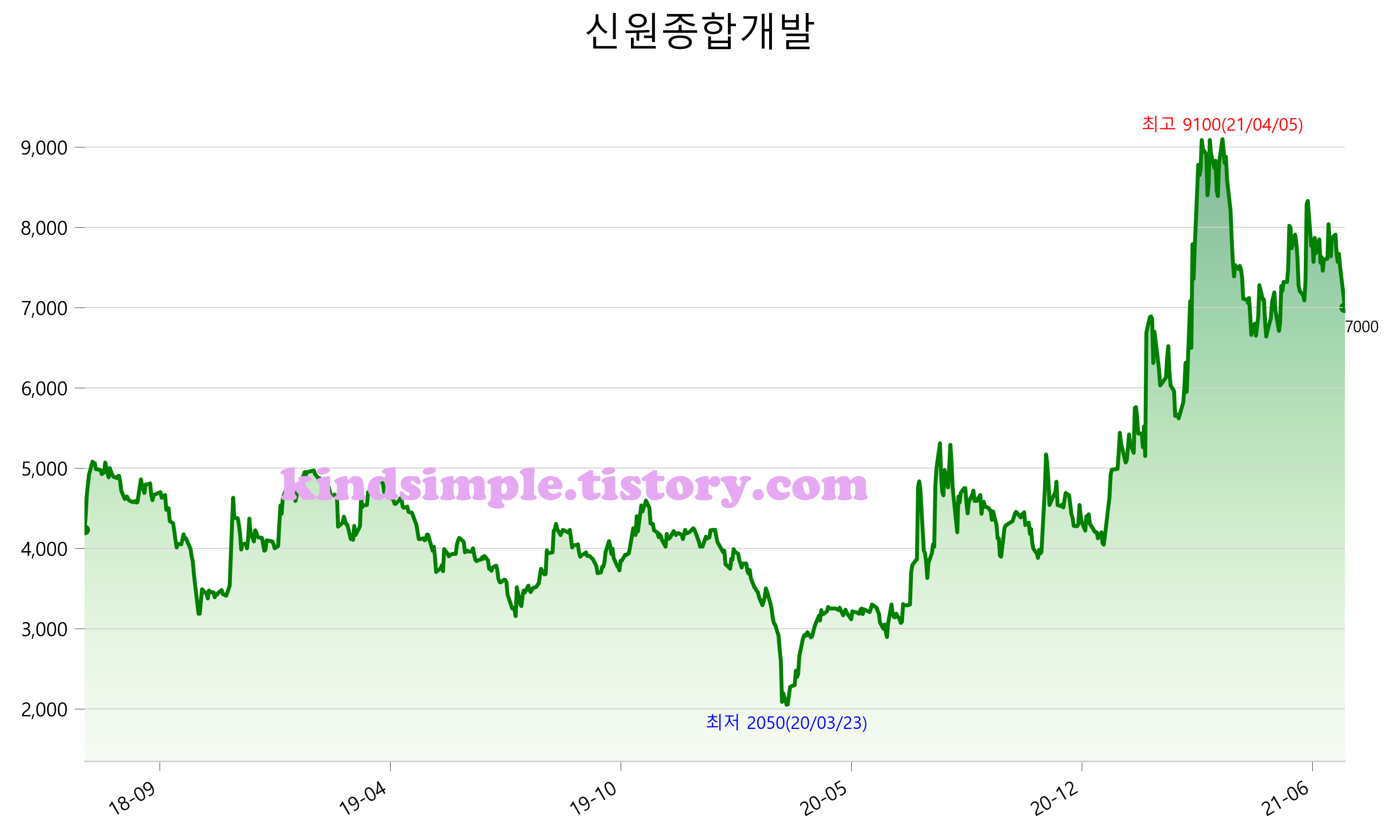 7월 21일 기준 주가는 7,000원 입니다. 아래는 최근 3년간의 주가흐름입니다.
