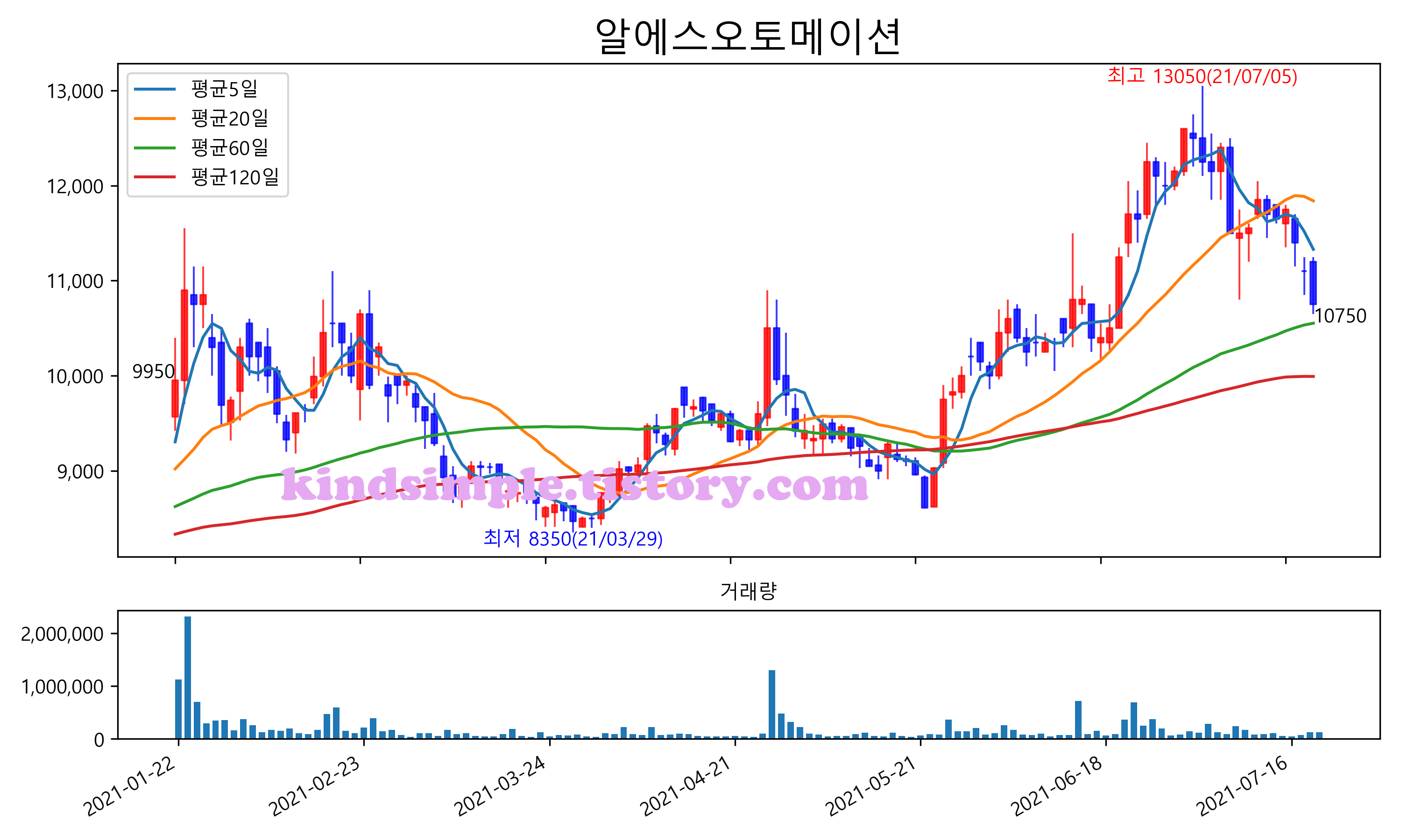 최근 6개월간 캔들차트 및 이동평균선입니다.
