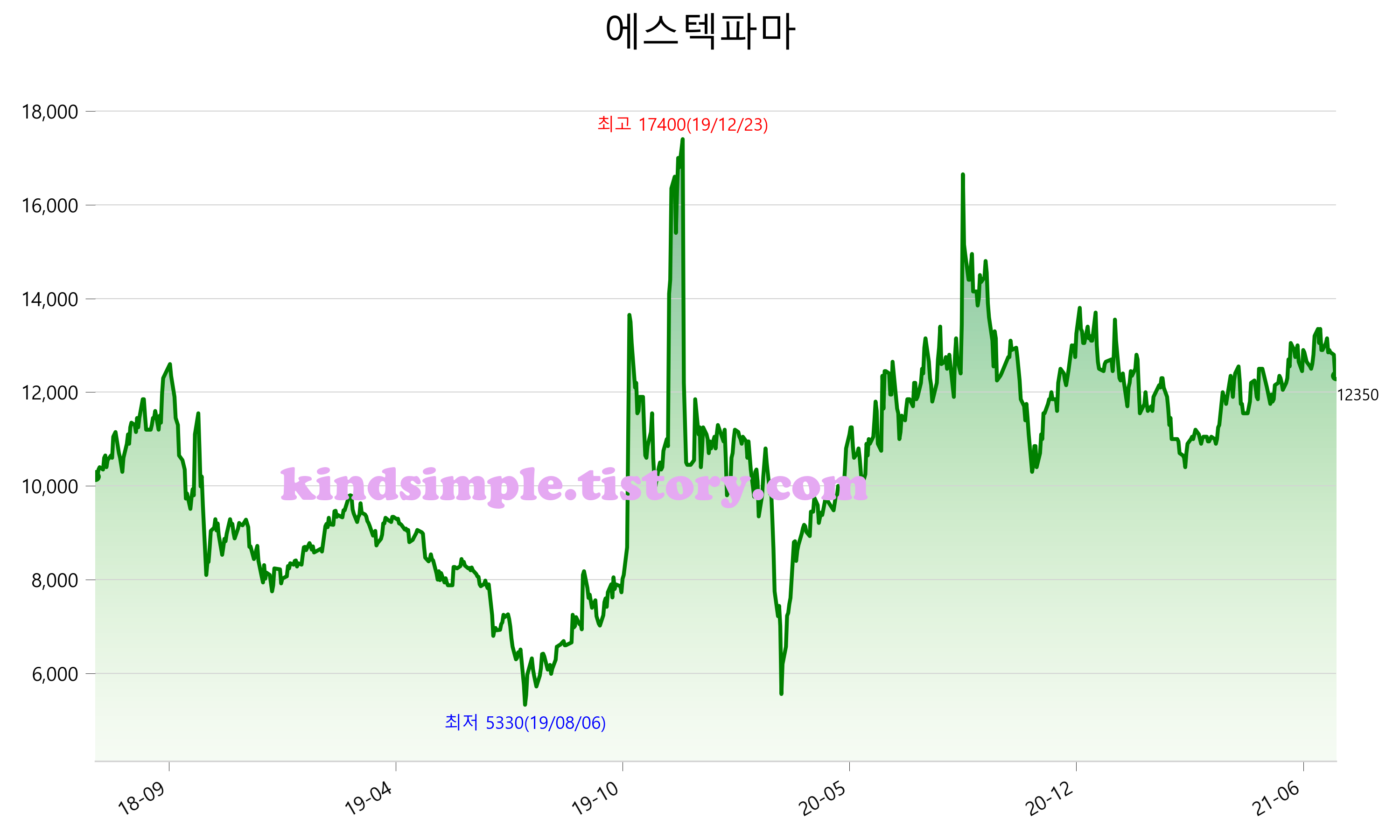 7월 21일 기준 주가는 12,350원 입니다. 아래는 최근 3년간의 주가흐름입니다.