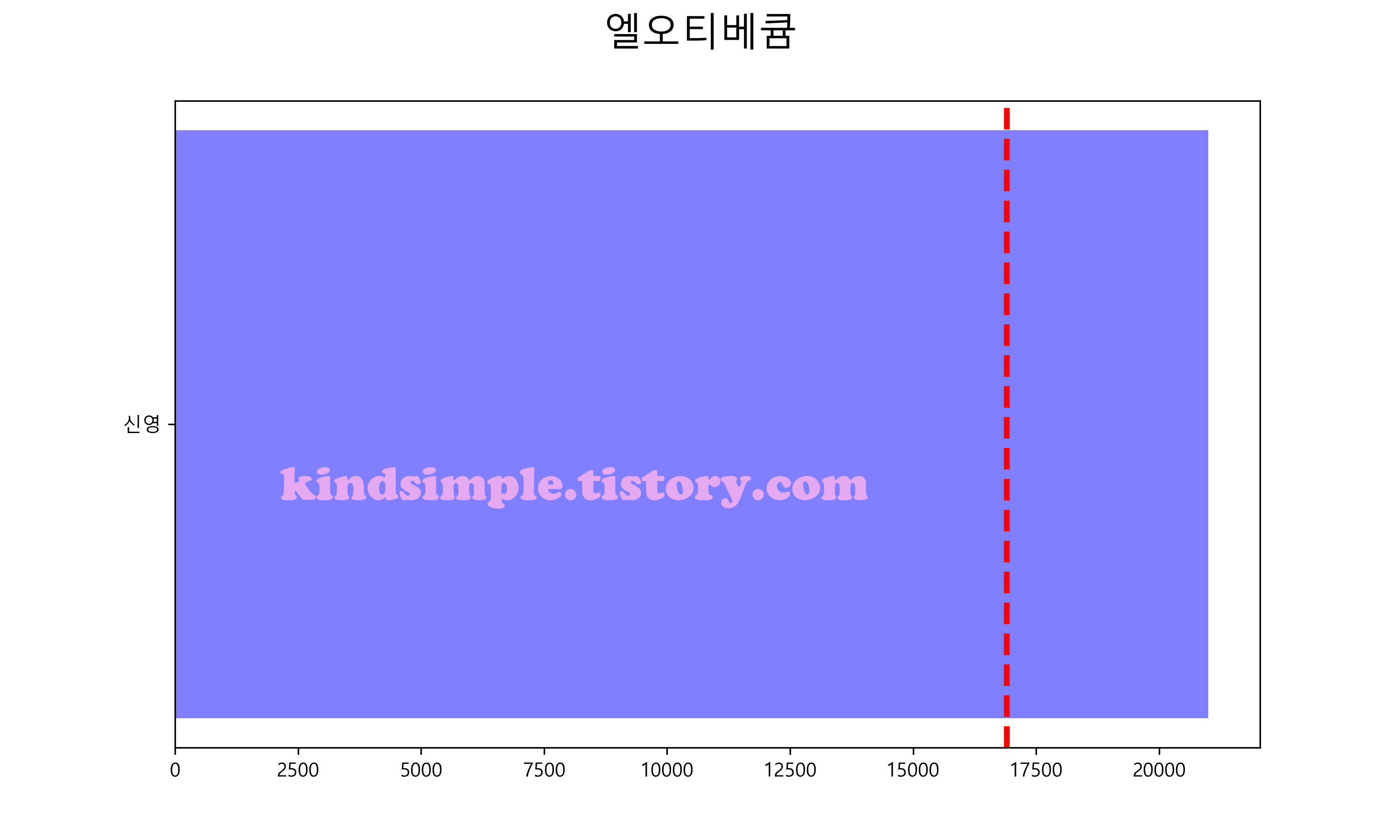 아래 그래프의 빨간색 점선이 현재 주가입니다.