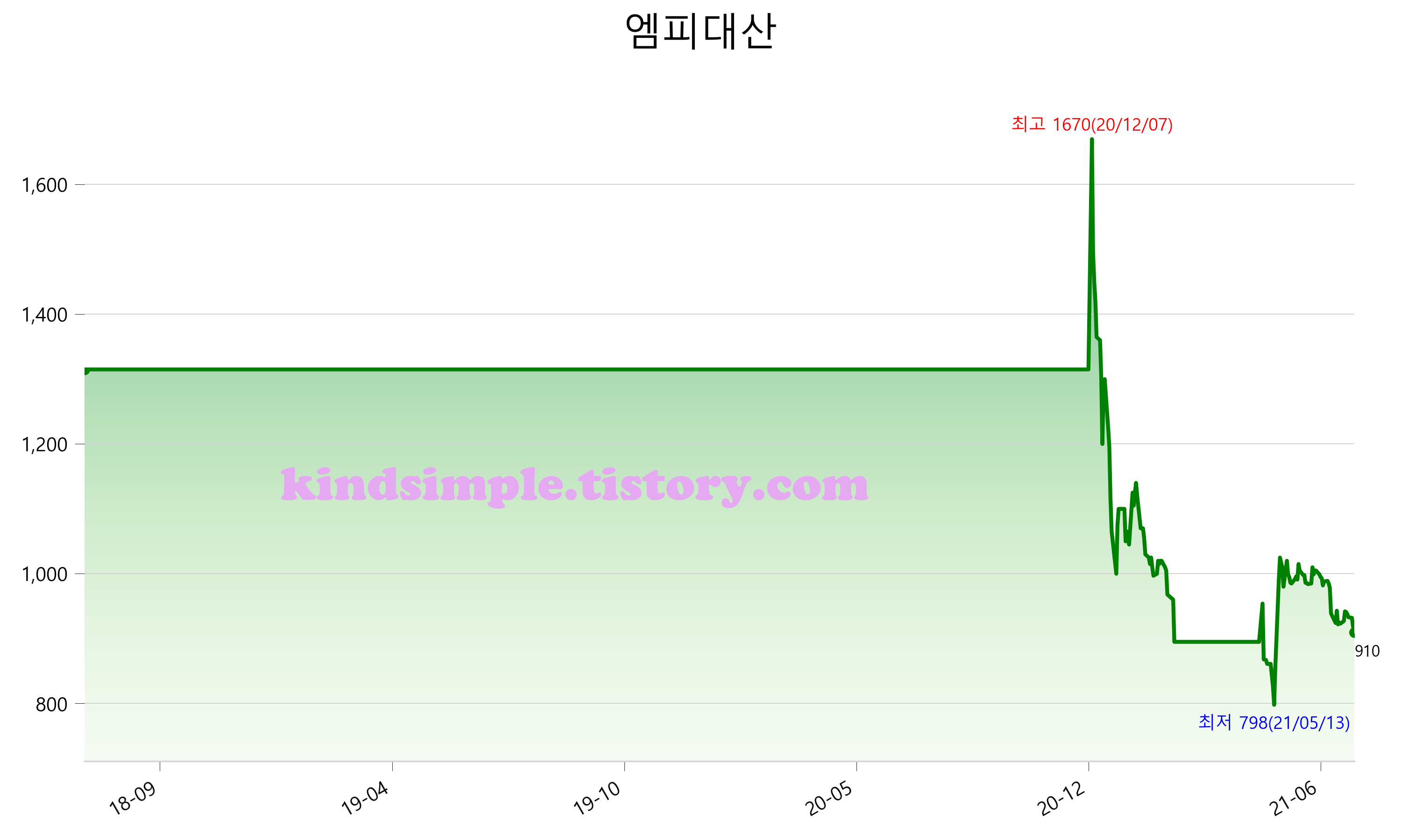 7월 21일 기준 주가는 910원 입니다. 아래는 최근 3년간의 주가흐름입니다.