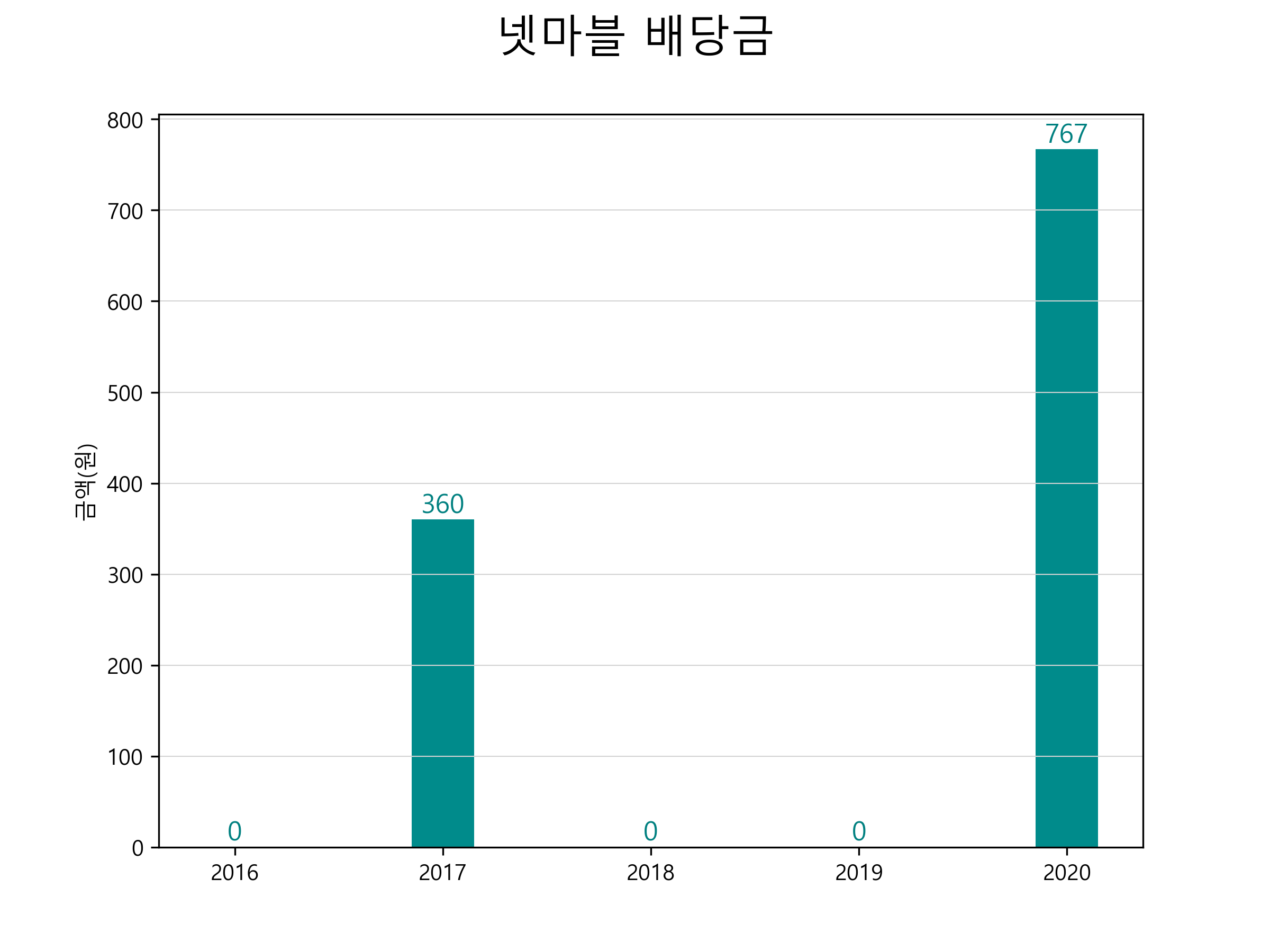 | 배당금 | 0 | 360 | 0 | 0 | 767 |