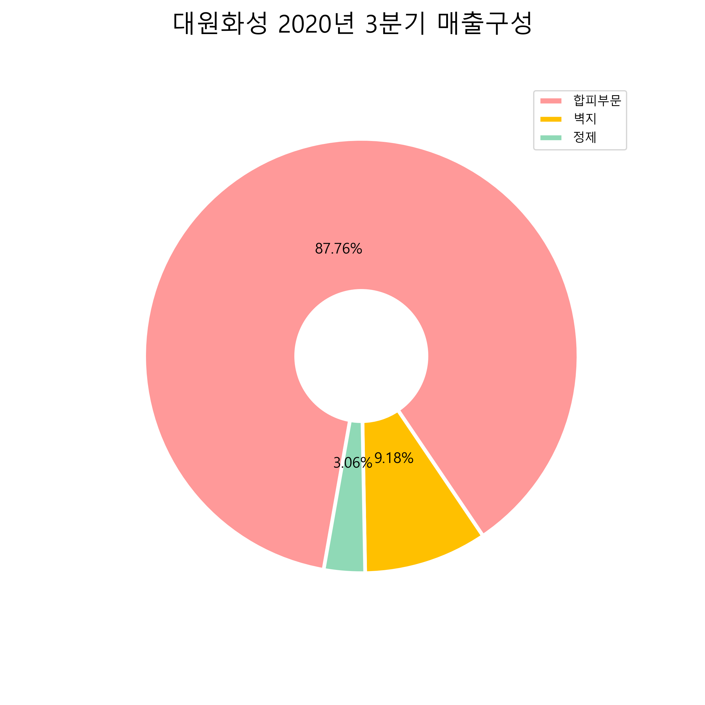 대원화성의 2020년 3분기 매출구성입니다.
