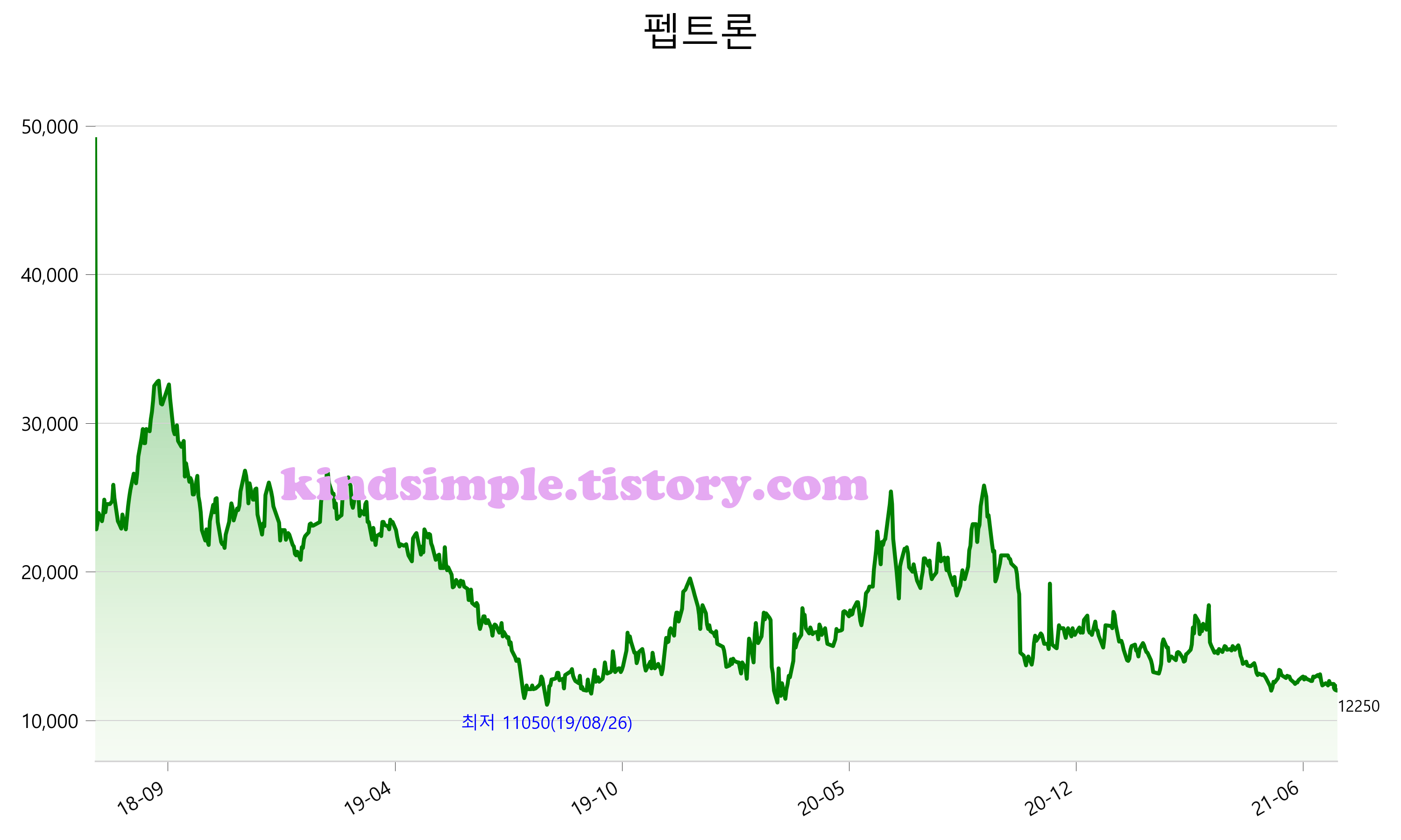 7월 22일 기준 주가는 12,250원 입니다. 아래는 최근 3년간의 주가흐름입니다.