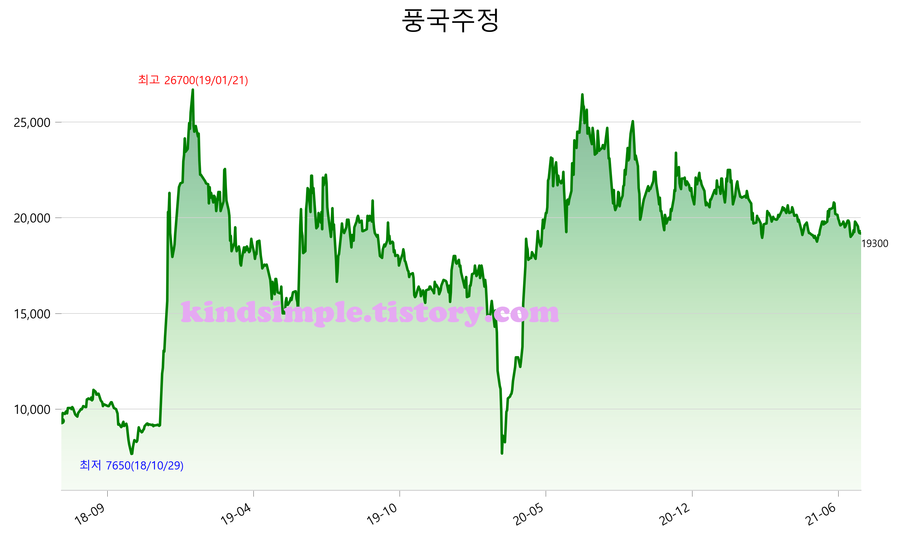7월 23일 기준 주가는 19,300원 입니다. 아래는 최근 3년간의 주가흐름입니다.