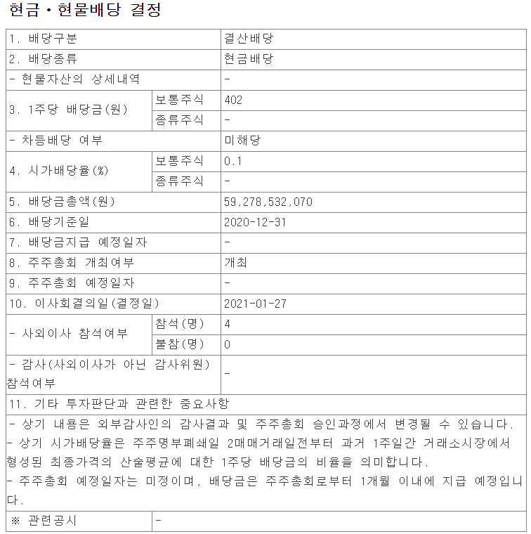 - 현금ㆍ현물배당결정 (2021.01.28) NAVER