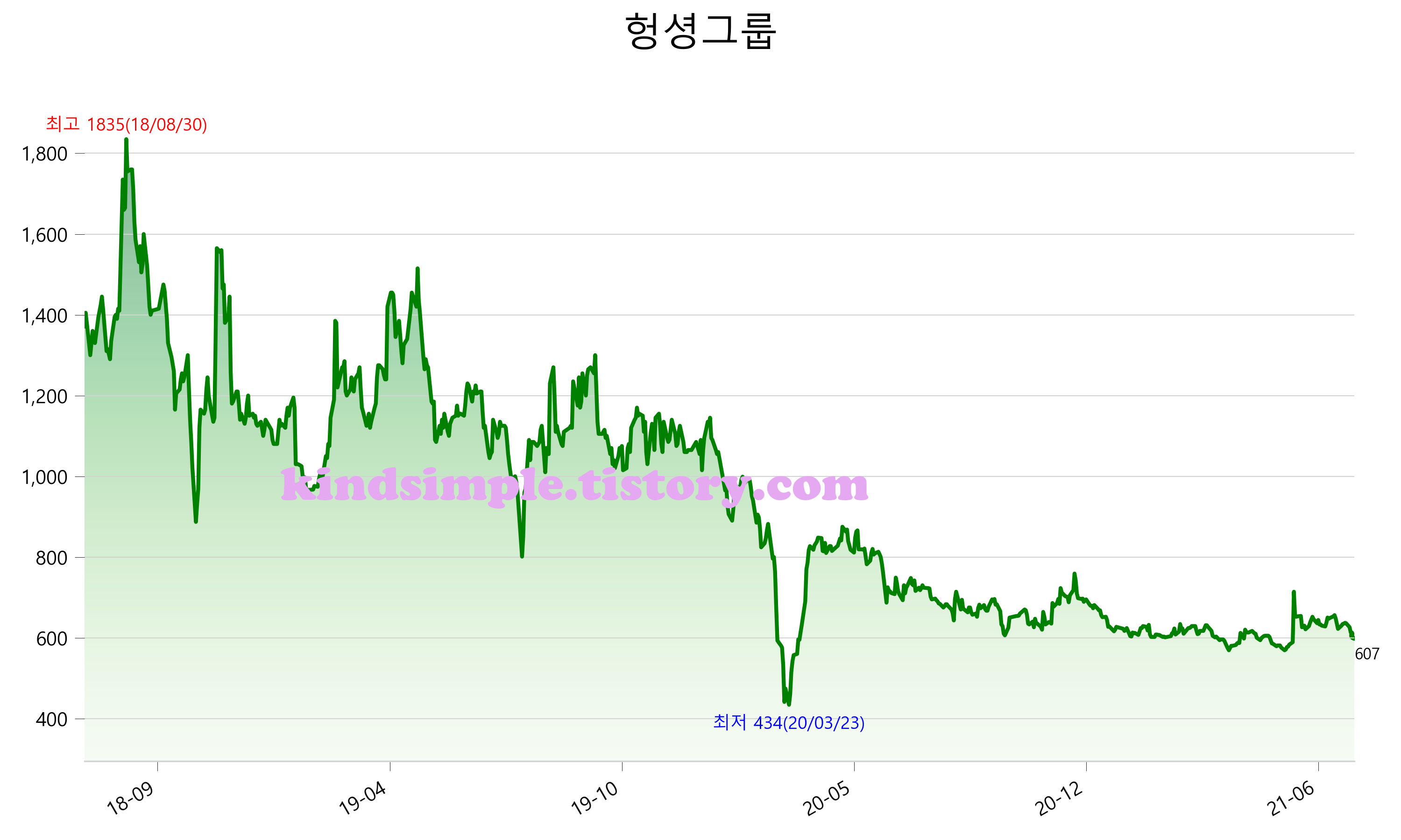 7월 23일 기준 주가는 607원 입니다. 아래는 최근 3년간의 주가흐름입니다.