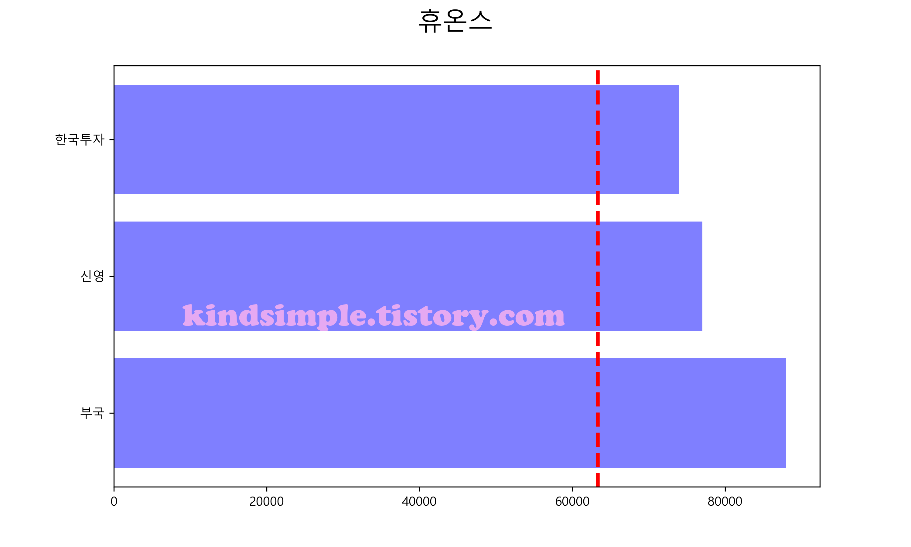 아래 그래프의 빨간색 점선이 현재 주가입니다.