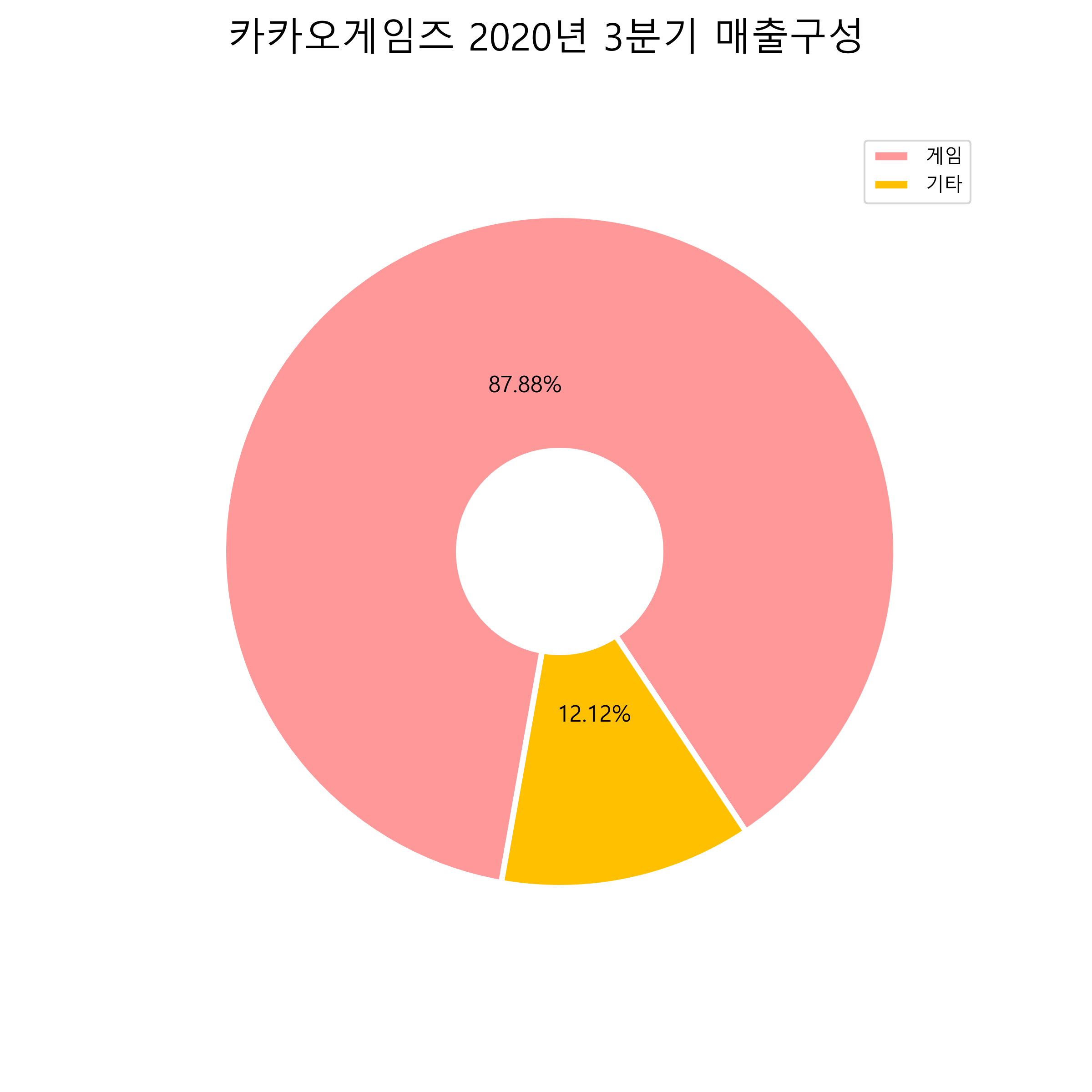 카카오게임즈의 2020년 3분기 매출구성입니다.