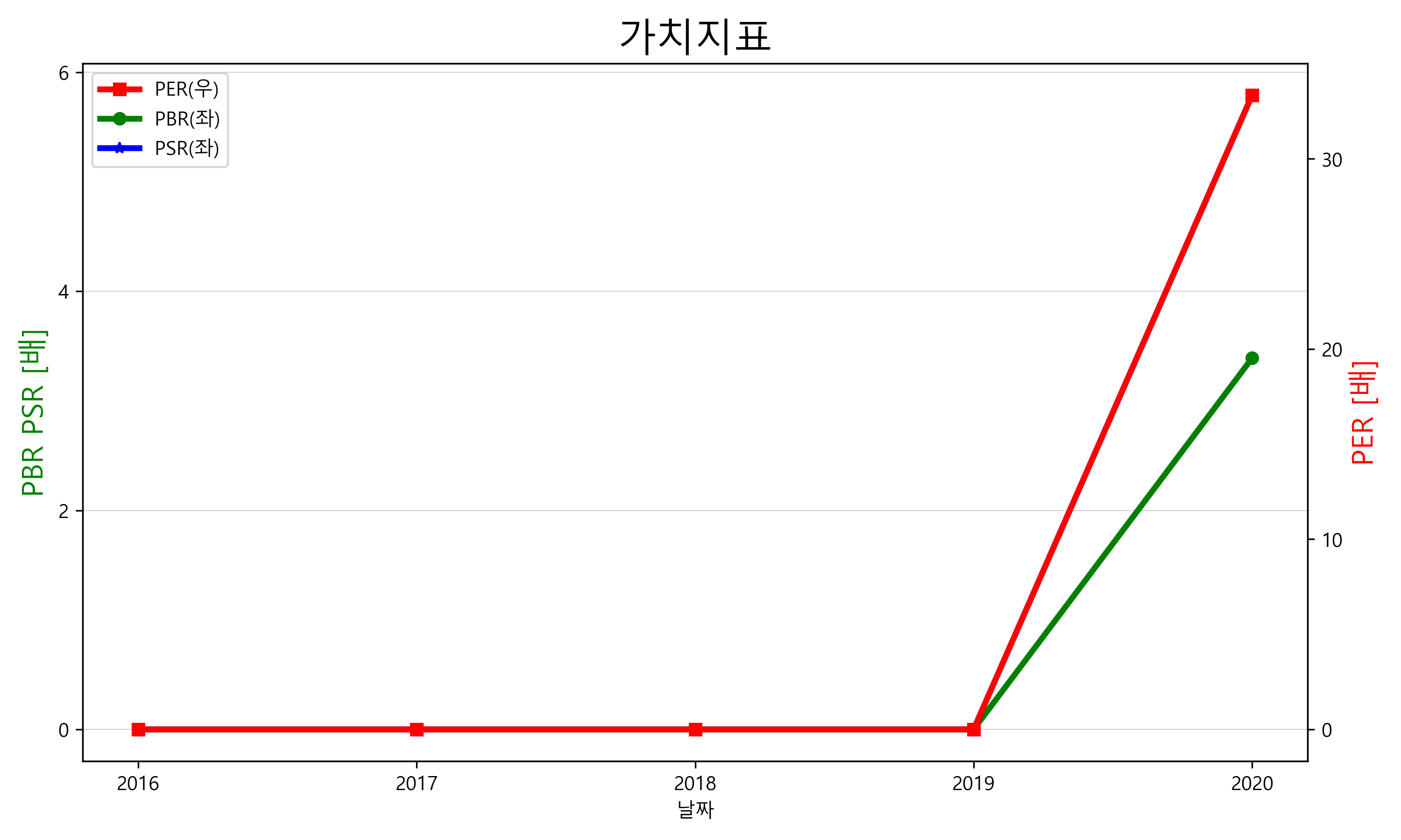 - PER : 272.08배, 동일업종 PER : 34.67배