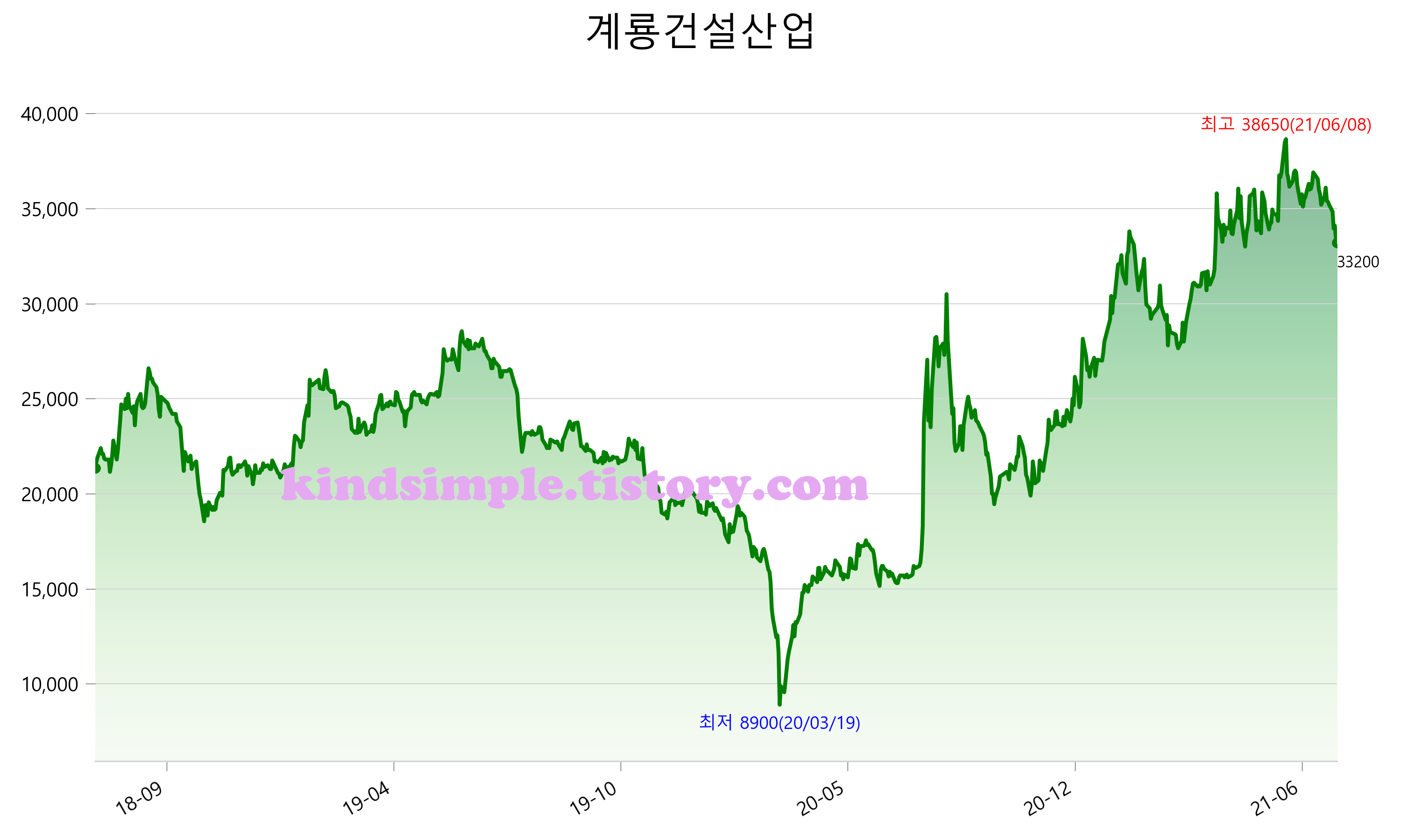 52주 최고가는 38,650원(2021-06-08), 52주 최저가는 19,450원(2020-09-24)으로 52주간 변동률은 39.8% 입니다.