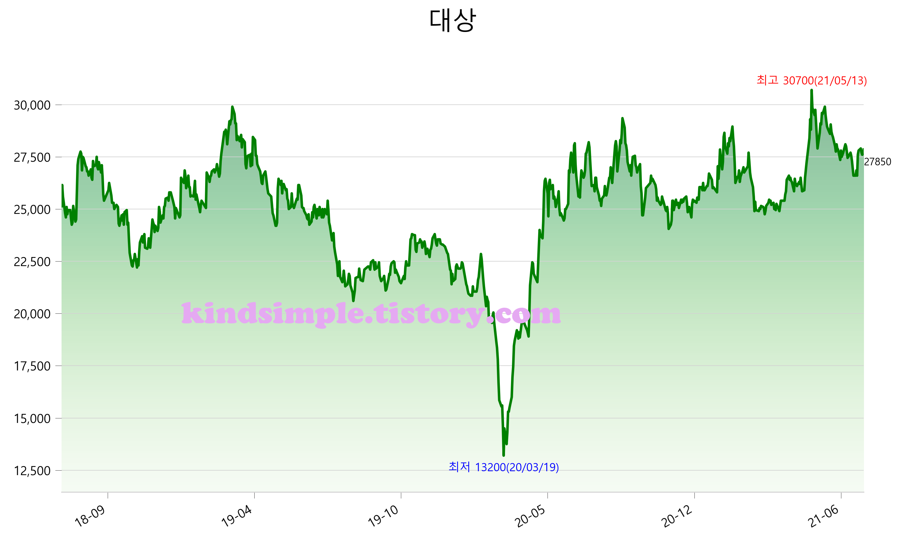 7월 23일 기준 주가는 27,850원 입니다. 아래는 최근 3년간의 주가흐름입니다.