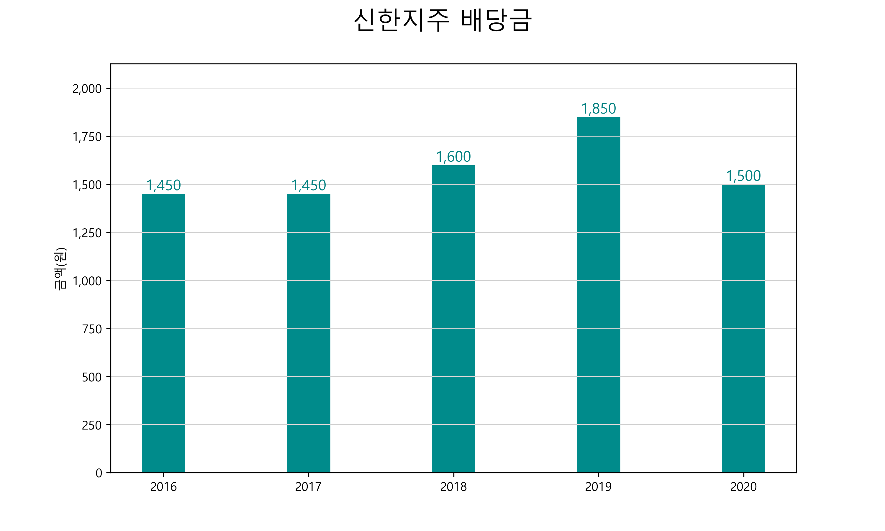 | 배당금 | 1,450 | 1,450 | 1,600 | 1,850 | 1,500 |
