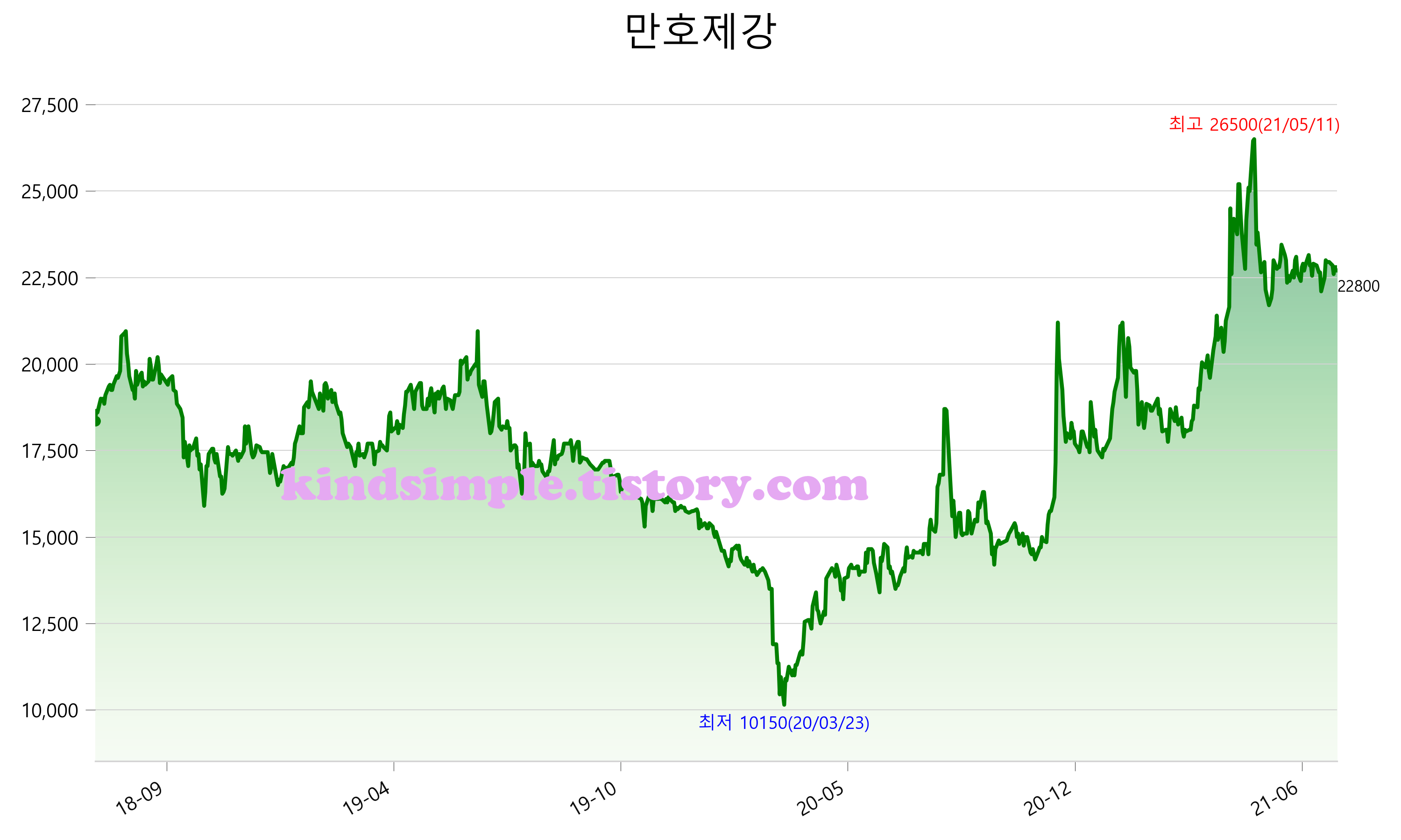 7월 23일 기준 주가는 22,800원 입니다. 아래는 최근 3년간의 주가흐름입니다.