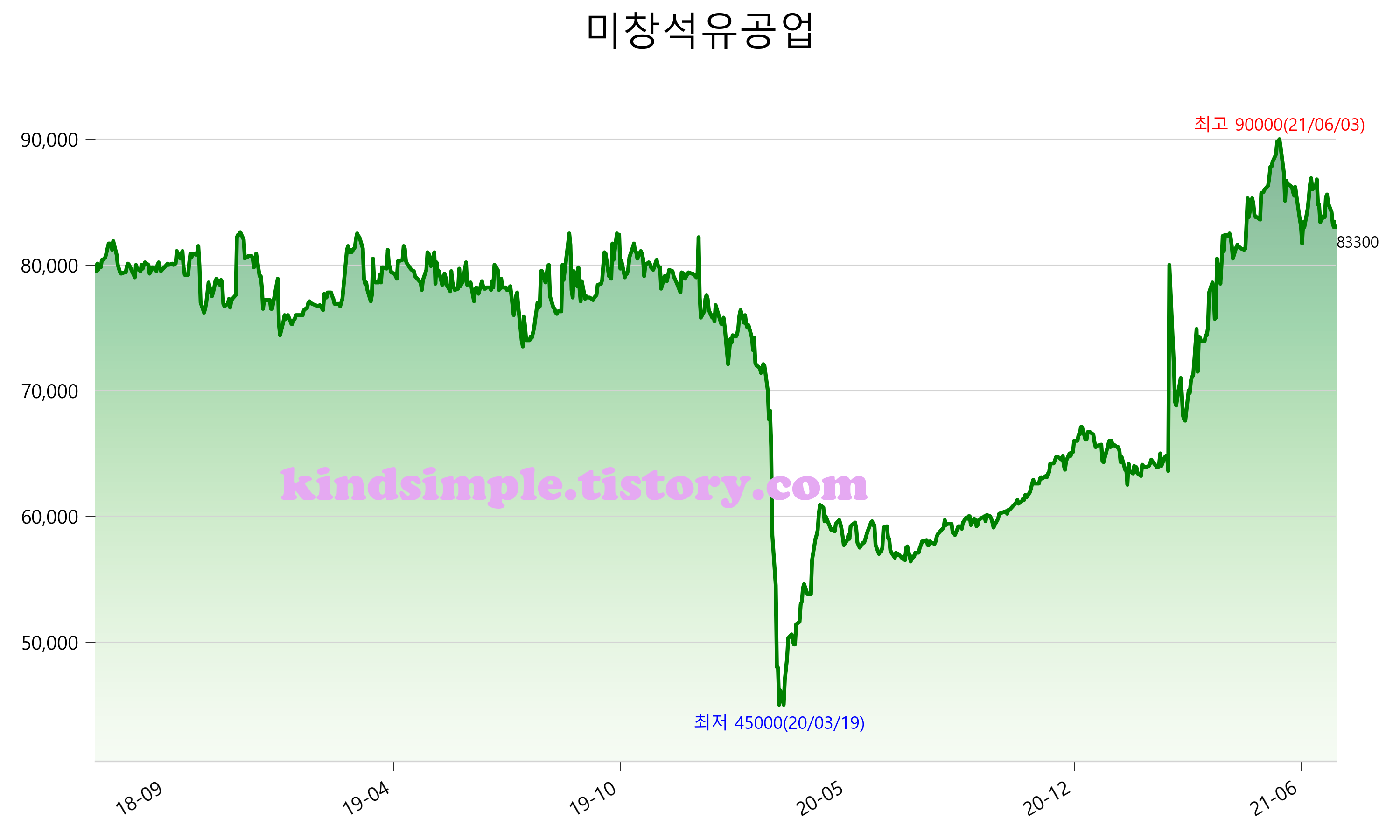 7월 23일 기준 주가는 83,300원 입니다. 아래는 최근 3년간의 주가흐름입니다.