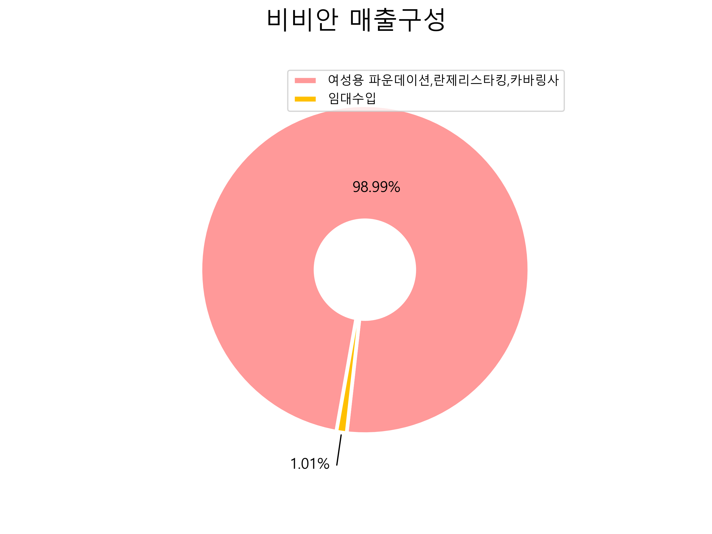 - 여성용 내의 제조와 판매를 주요 사업으로 하는 국내 최대 여성 란제리 전문기업임. 비비안 등이 주요 브랜드임.