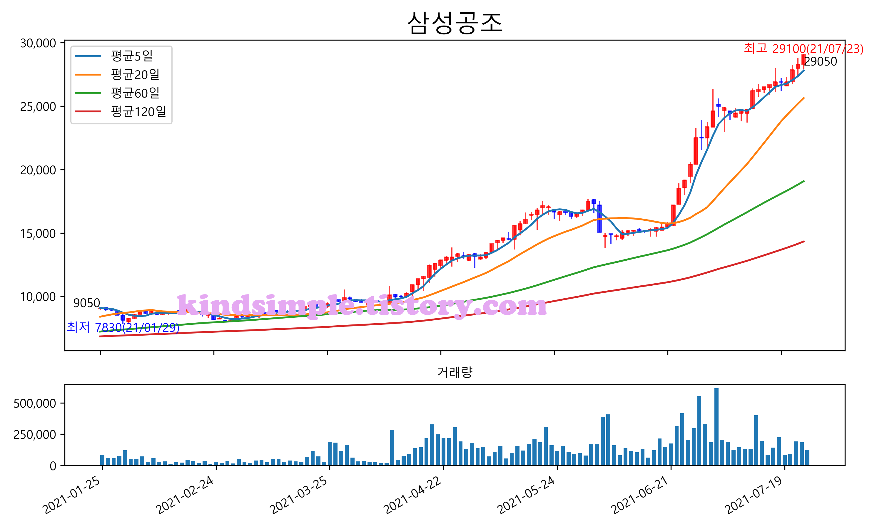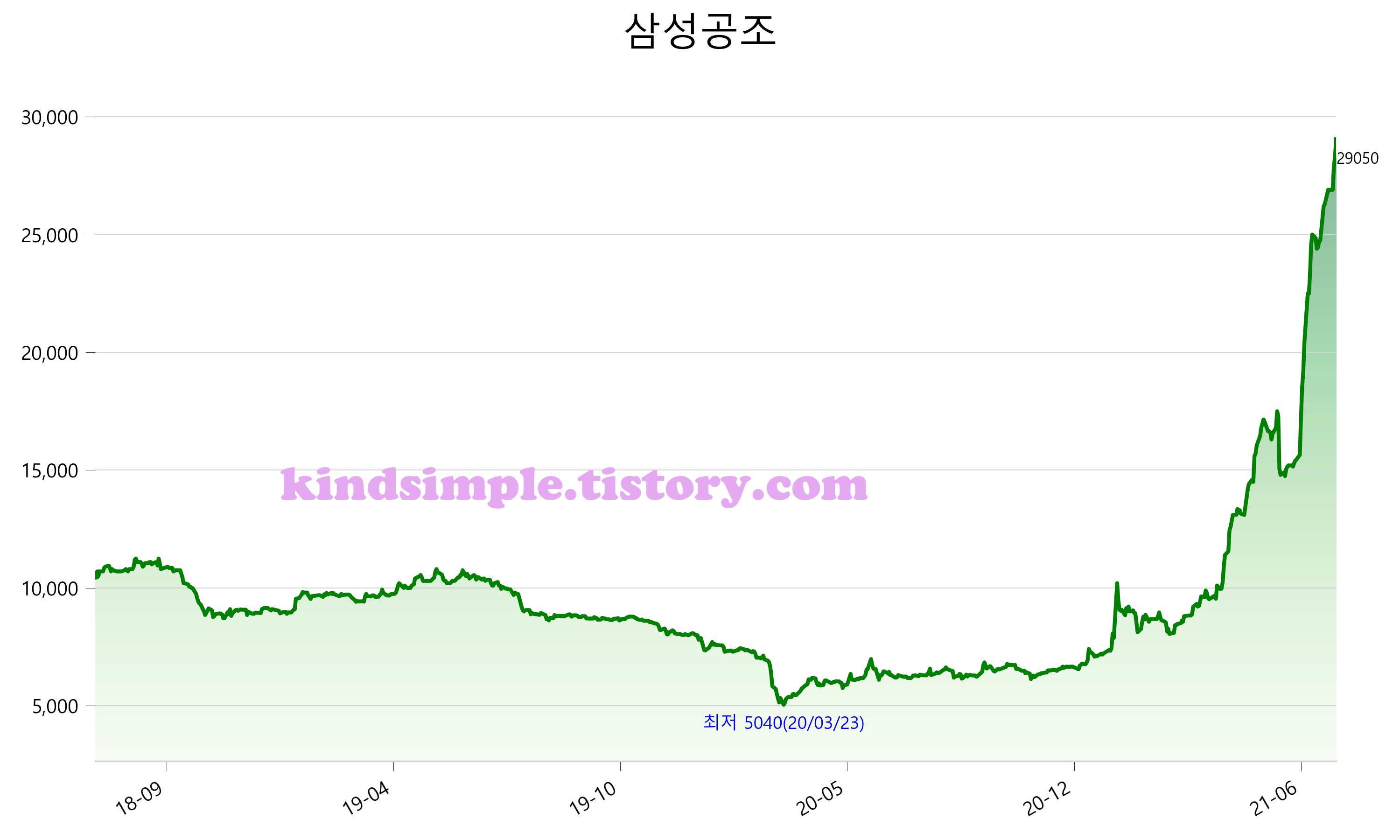 7월 23일 기준 주가는 29,050원 입니다. 아래는 최근 3년간의 주가흐름입니다.