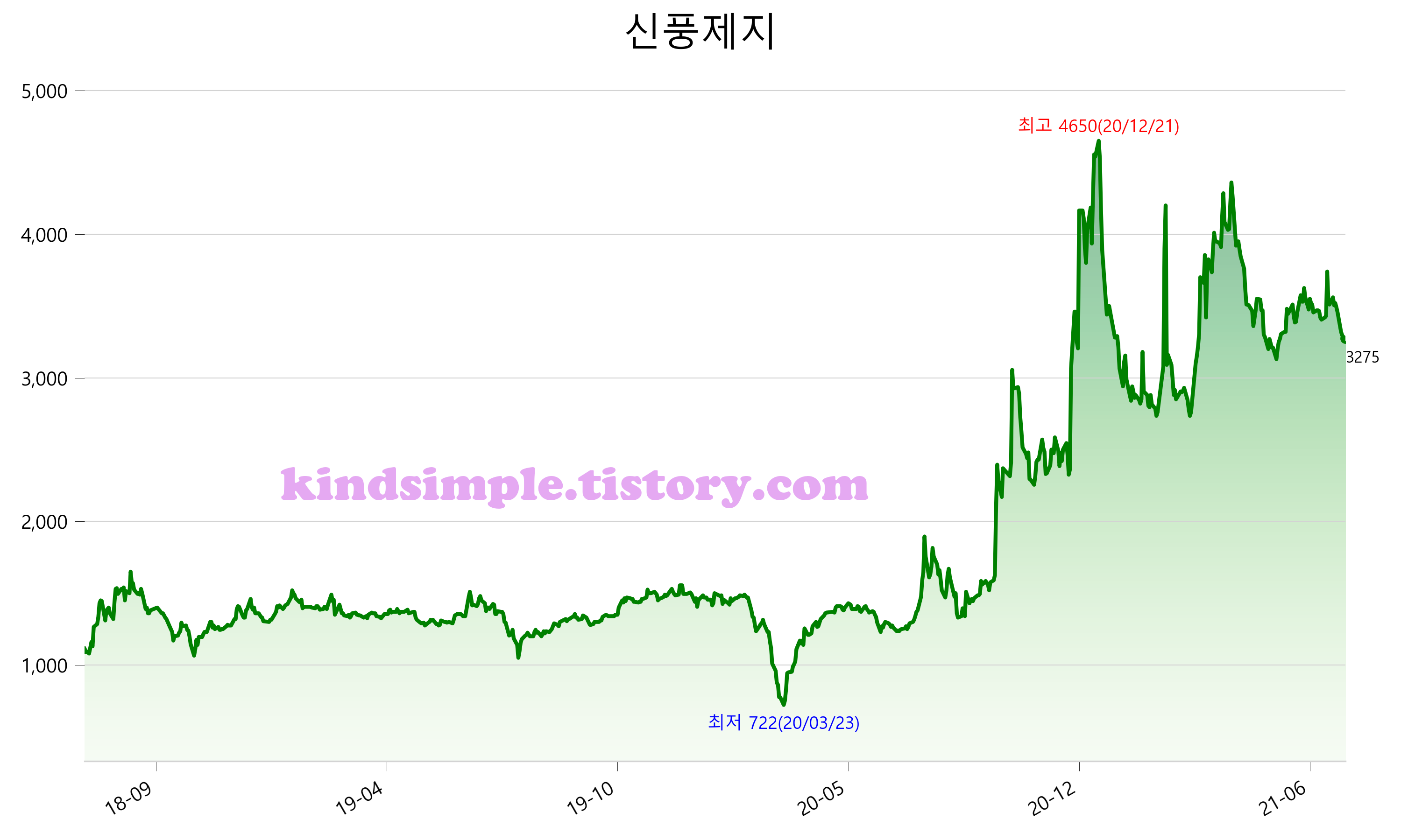 7월 24일 기준 주가는 3,275원 입니다. 아래는 최근 3년간의 주가흐름입니다.