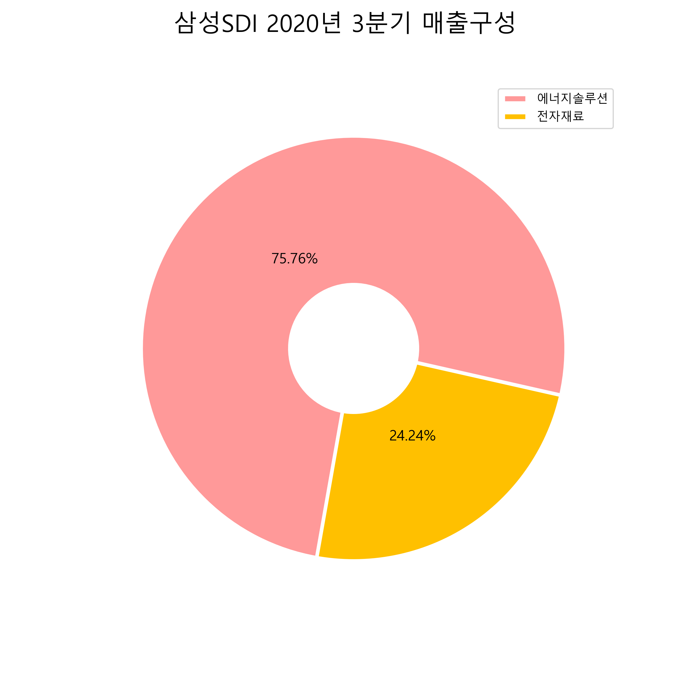 삼성SDI의 2020년 3분기 매출구성입니다.