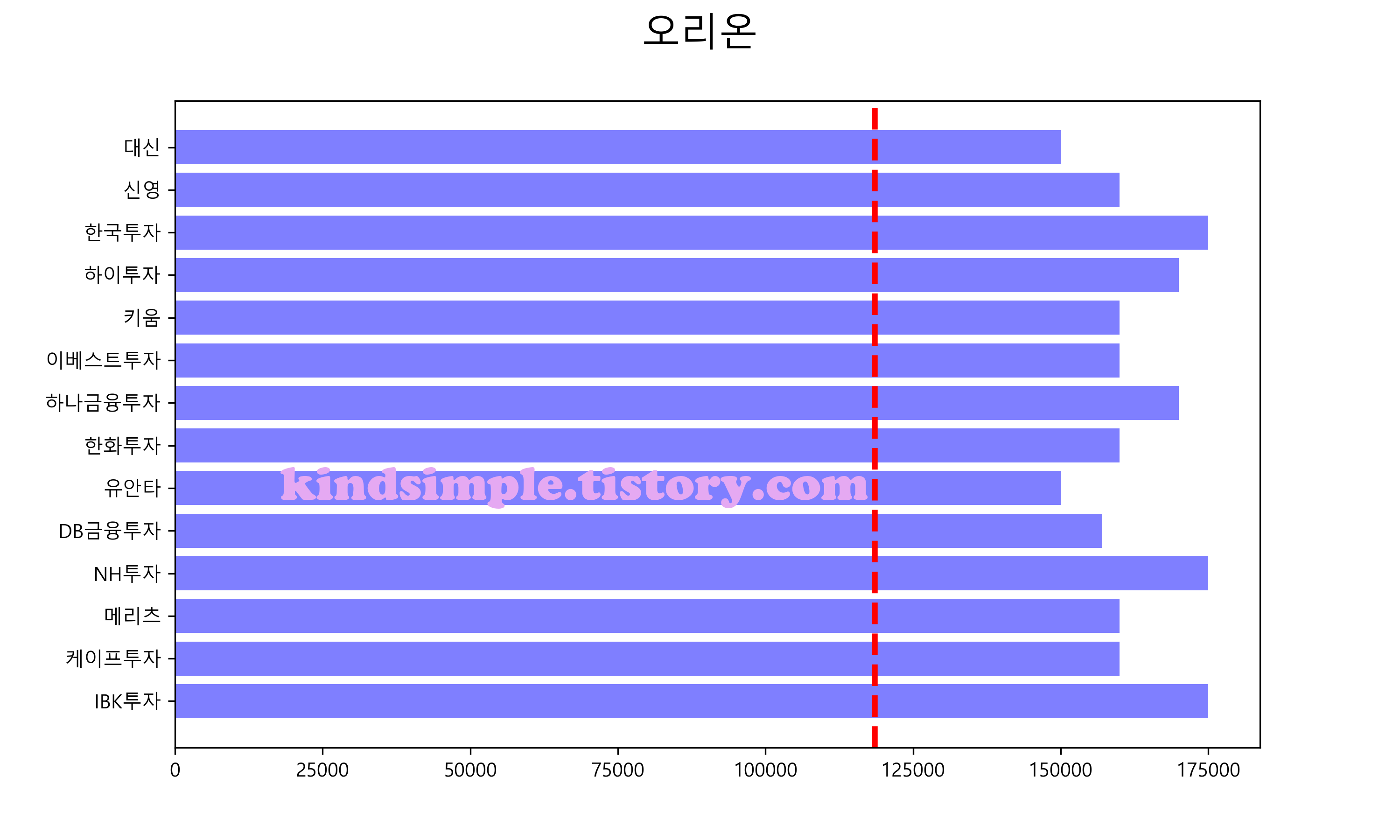 아래 그래프의 빨간색 점선이 현재 주가입니다.