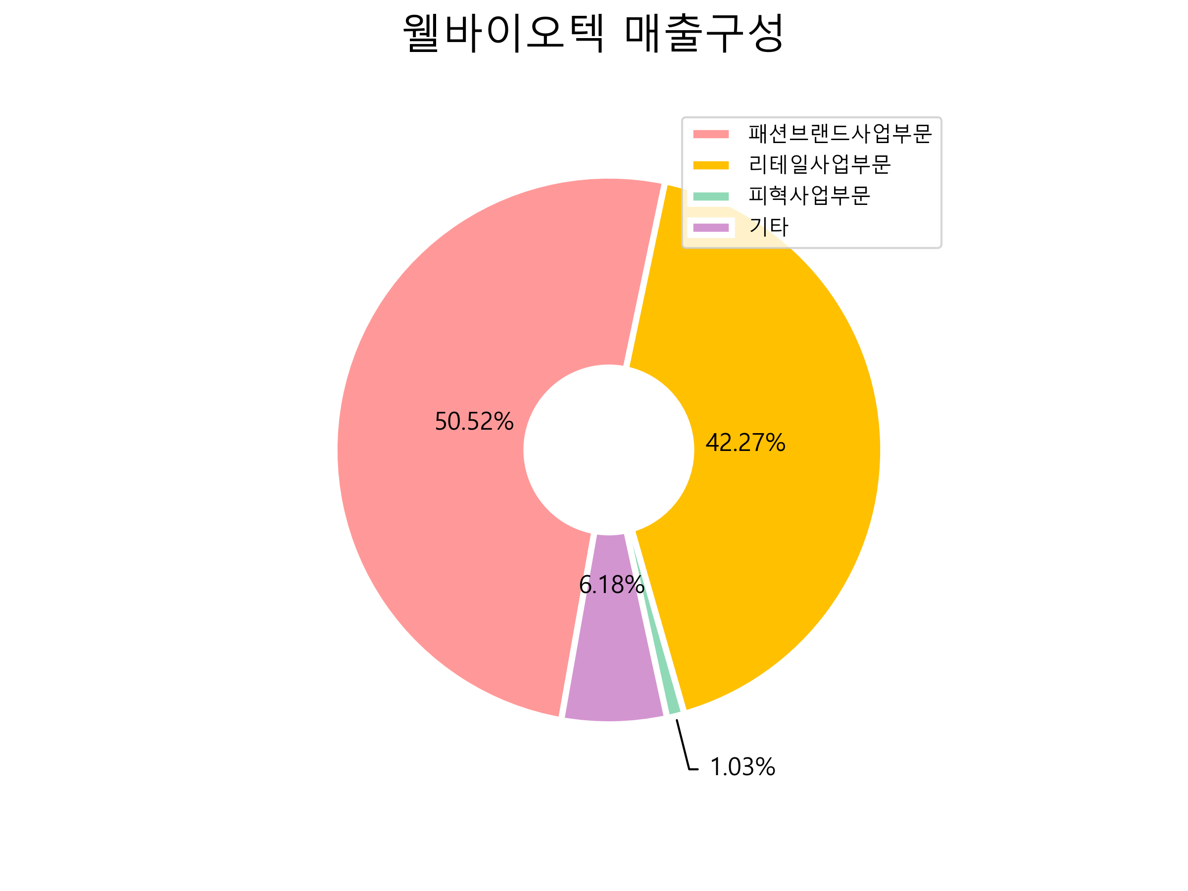 - 현재는 유통판매업(도,소매)을 주 사업목적으로 하고 피혁사업부, 패션브랜드사업부, 리테일사업부의 3개사업부를 중심으로 매출이 발생함.