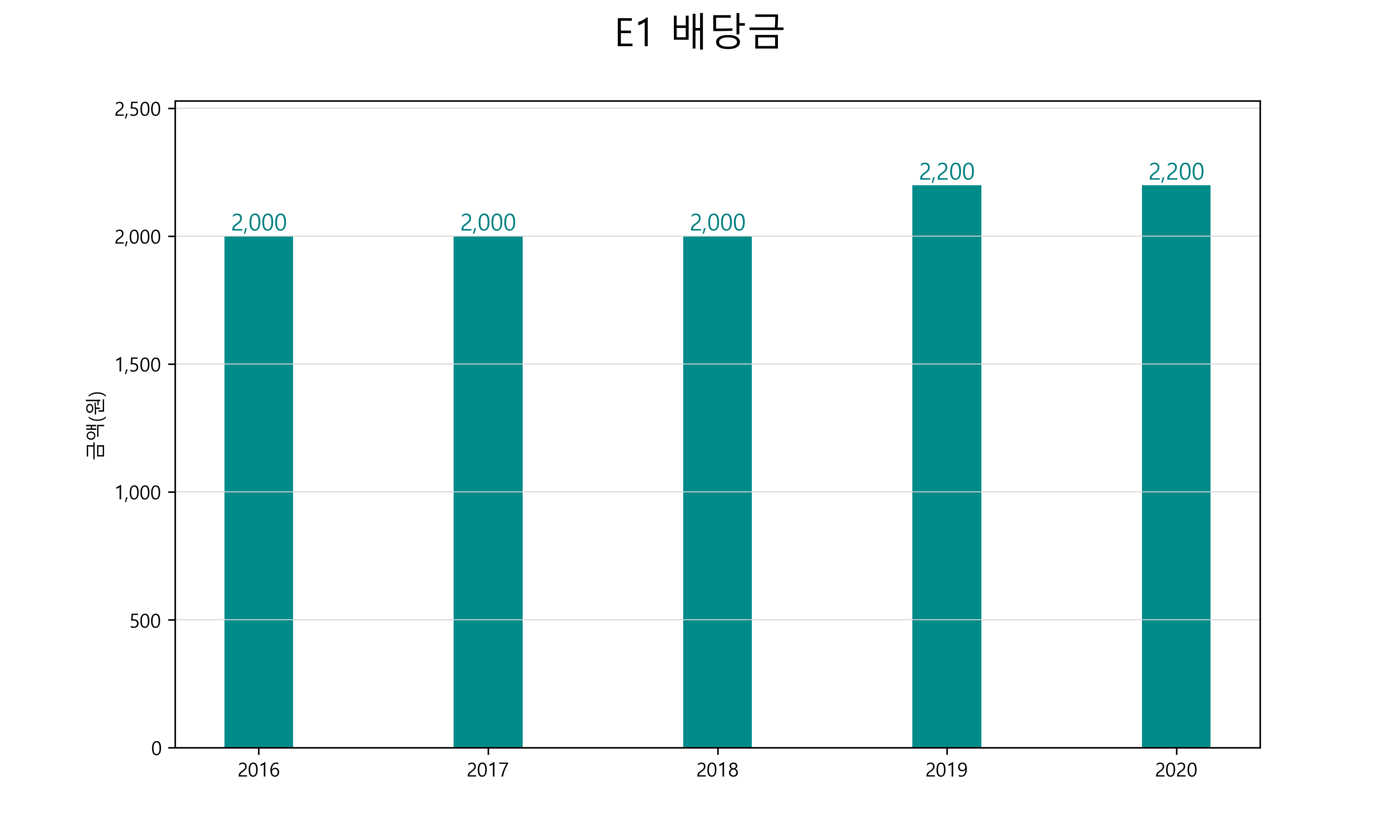 E1은 1년에 1번 배당을 실시하고 있으며 2021년 4월 중에 배당금을 지급합니다.
