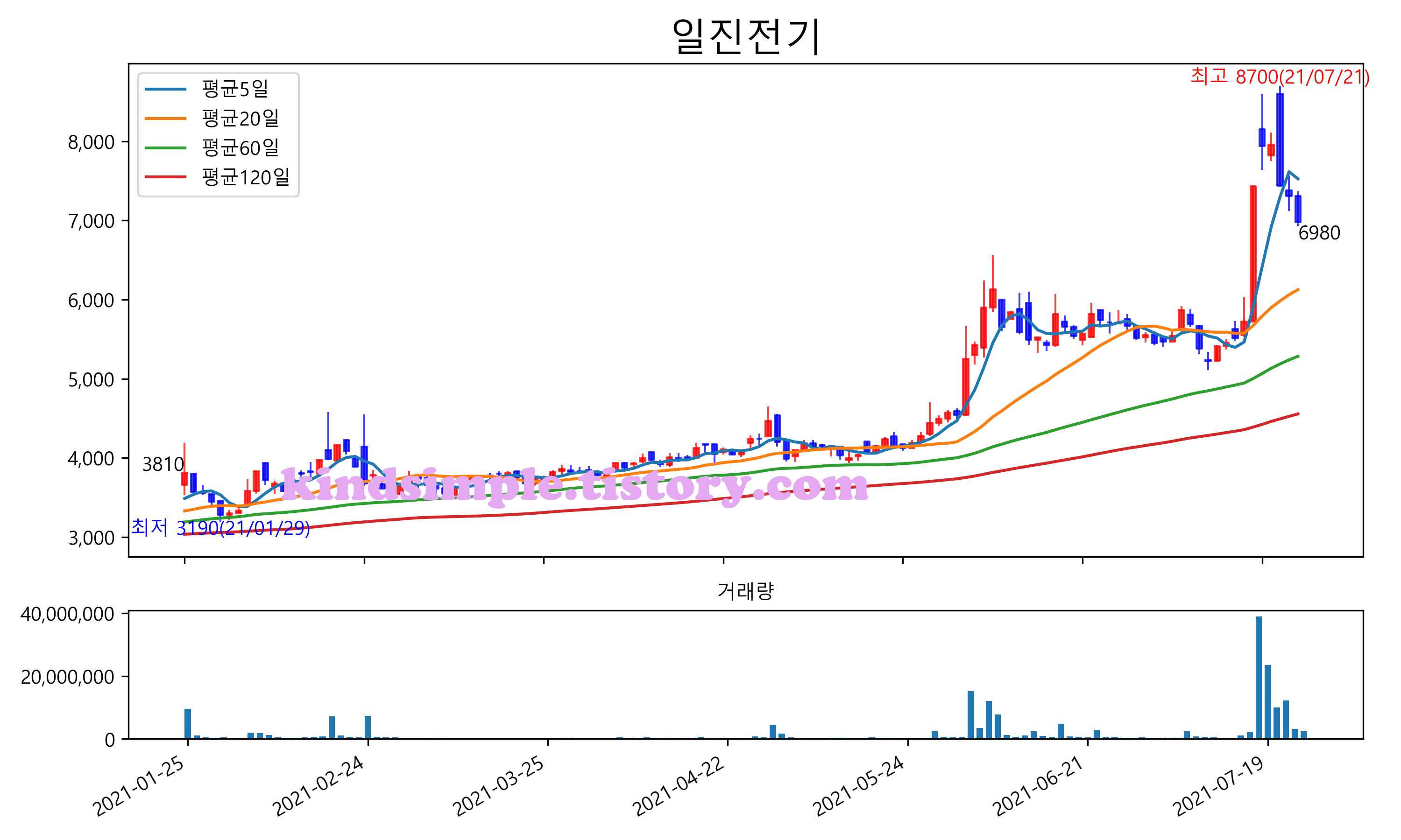 최근 6개월간 캔들차트 및 이동평균선입니다.