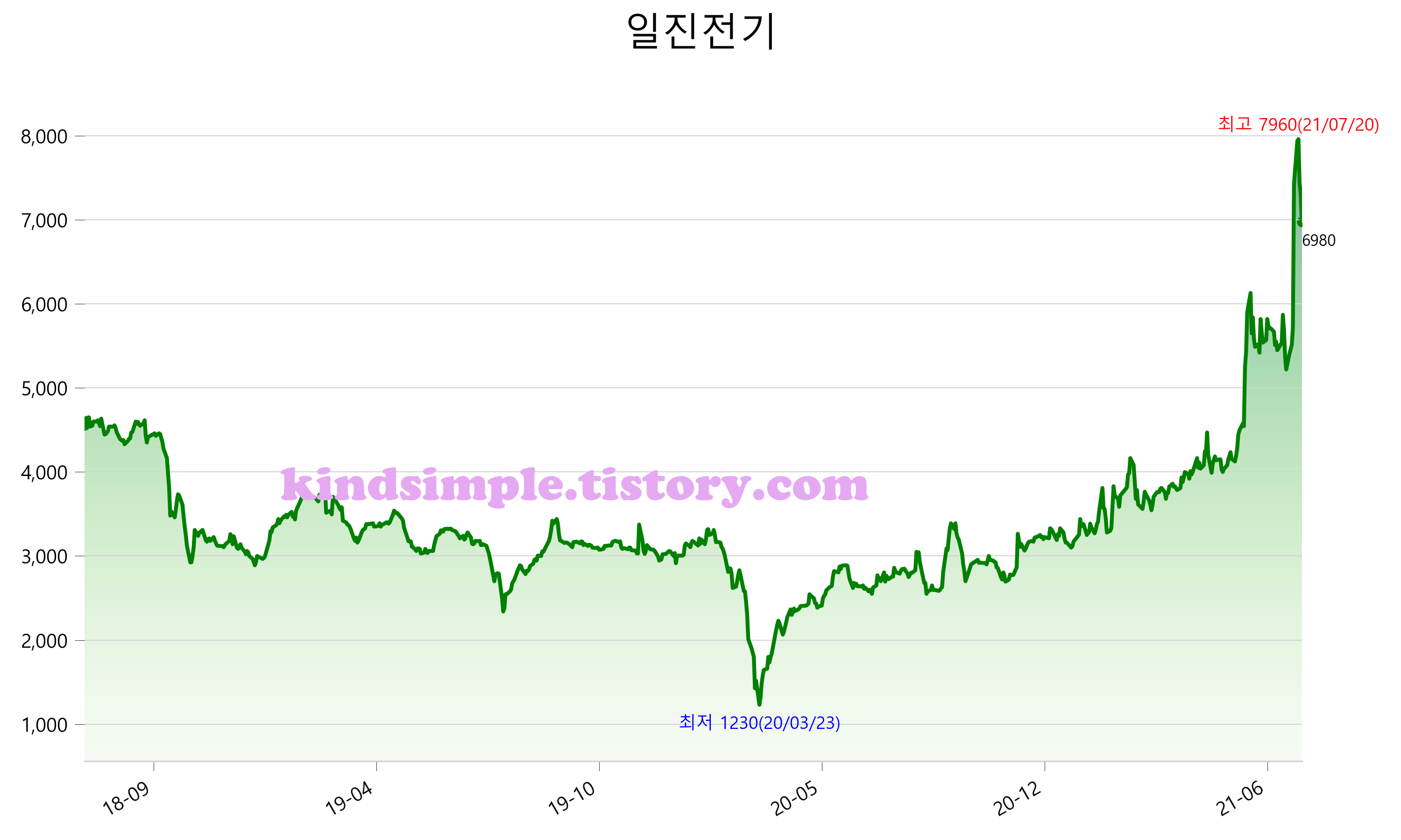 7월 24일 기준 주가는 6,980원 입니다. 아래는 최근 3년간의 주가흐름입니다.