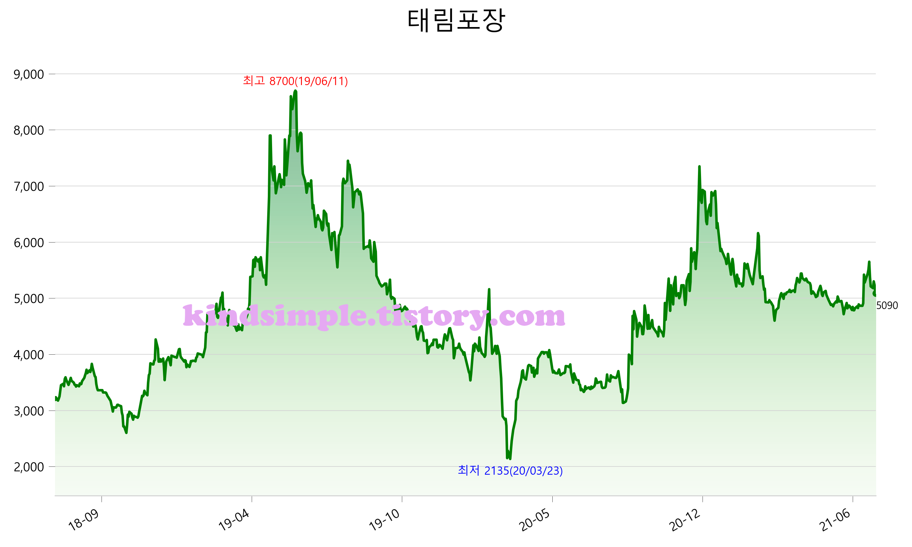 7월 24일 기준 주가는 5,090원 입니다. 아래는 최근 3년간의 주가흐름입니다.