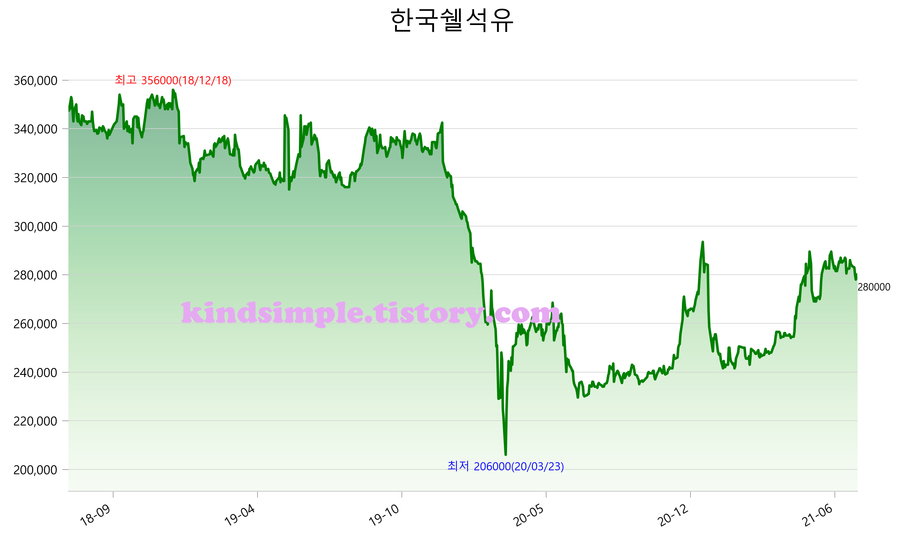 7월 24일 기준 주가는 280,000원 입니다. 아래는 최근 3년간의 주가흐름입니다.