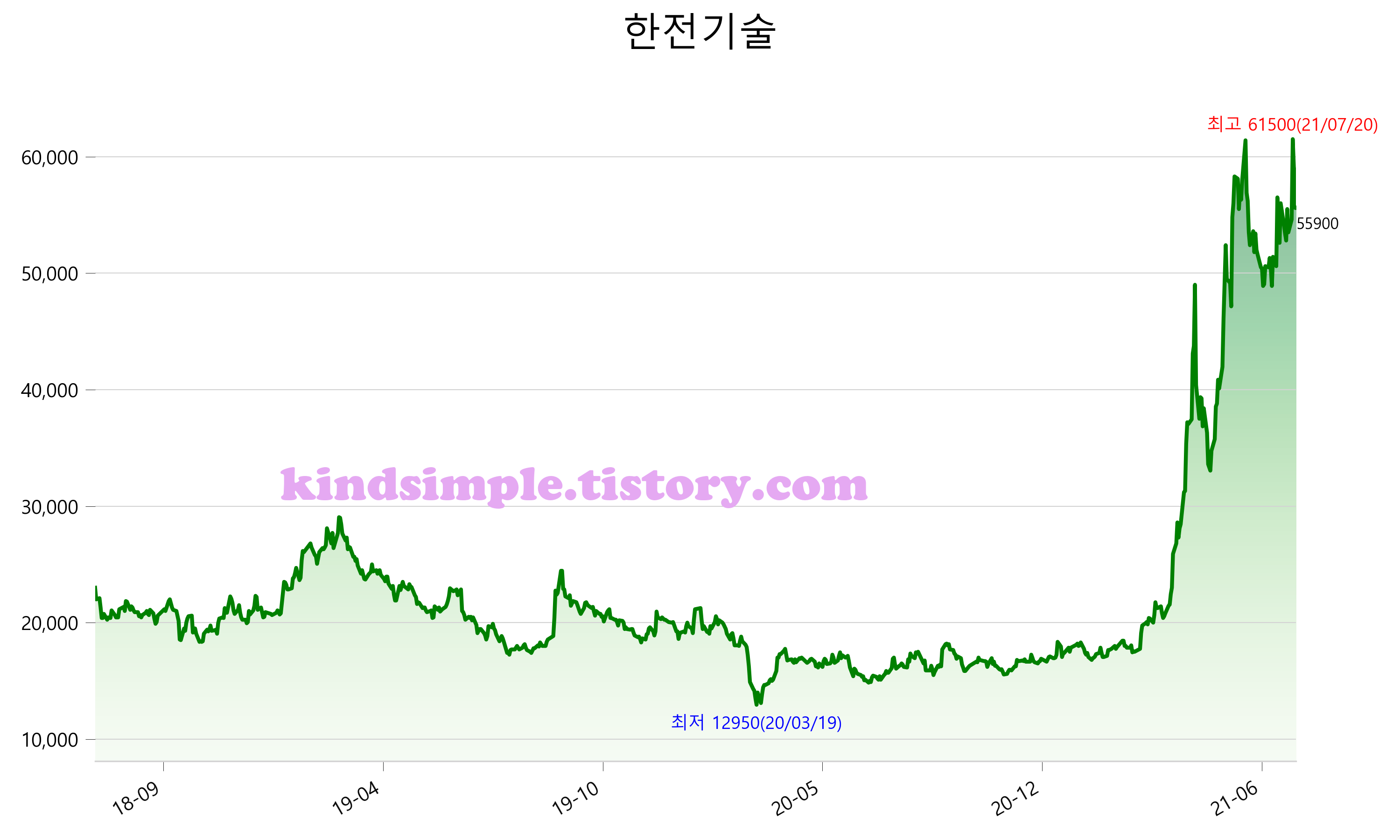 52주 최고가는 61,500원(2021-07-20), 52주 최저가는 15,500원(2020-08-27)으로 52주간 변동률은 242.9% 입니다.