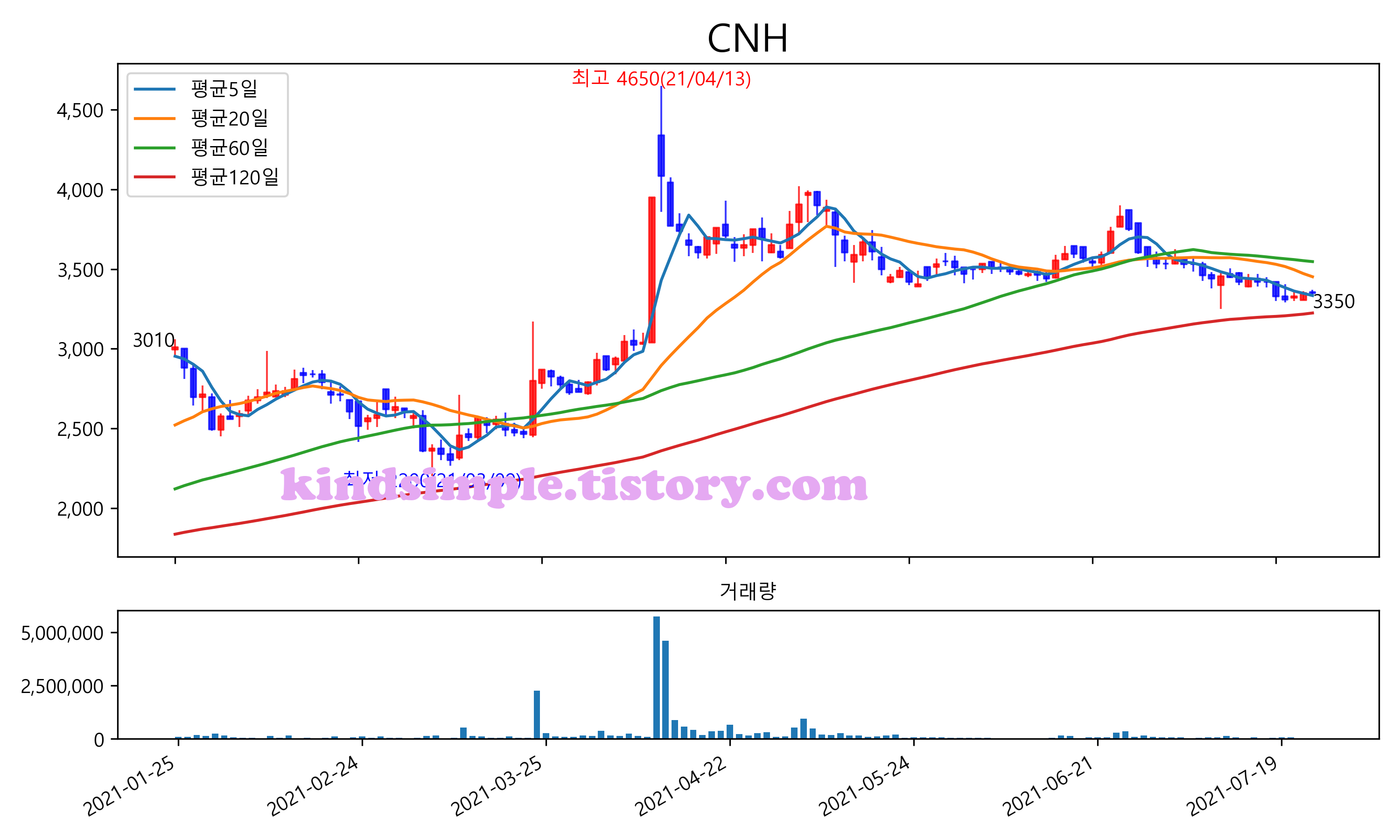 7월 24일 기준 주가는 3,350원 입니다. 아래는 최근 3년간의 주가흐름입니다.