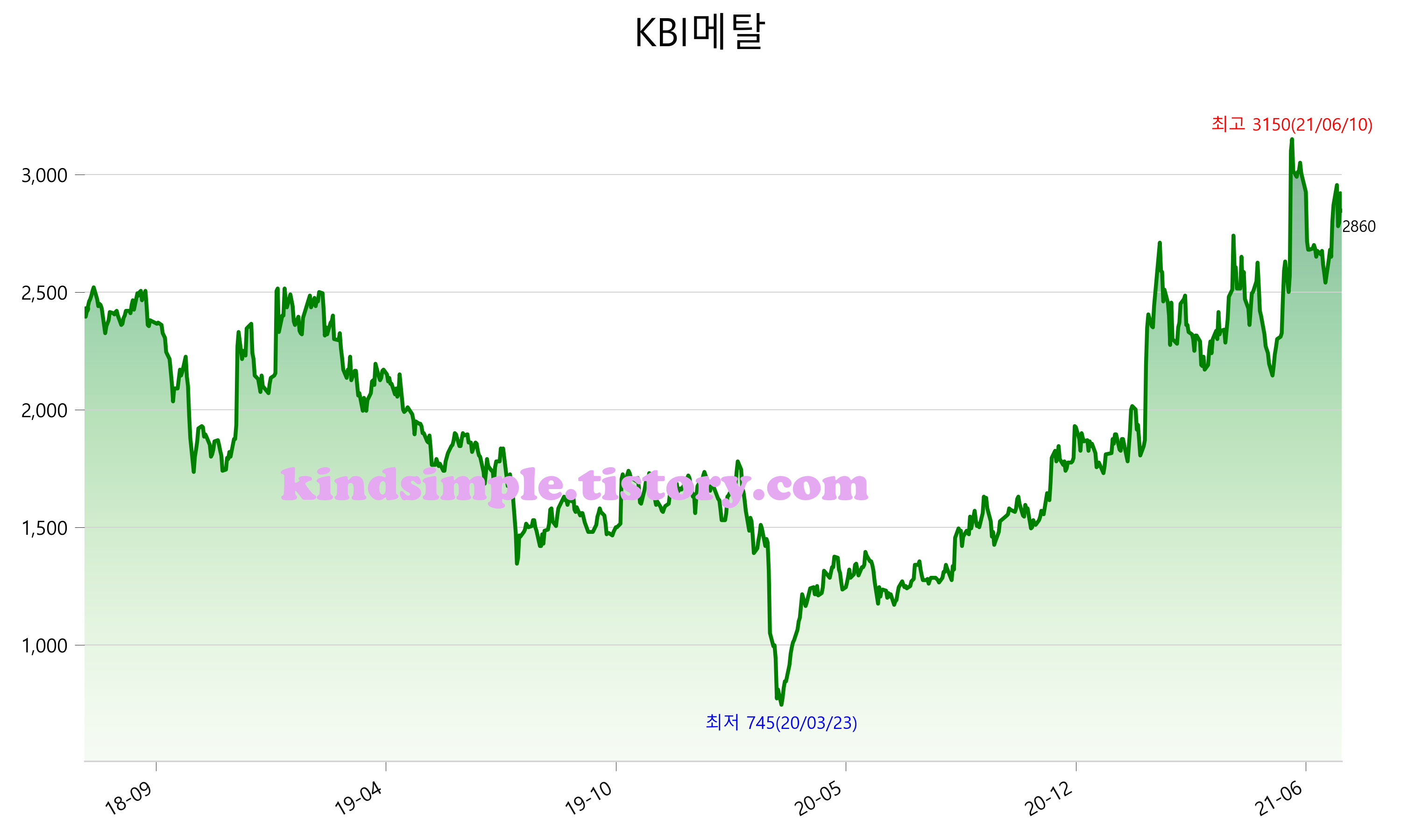 7월 24일 기준 주가는 2,860원 입니다. 아래는 최근 3년간의 주가흐름입니다.