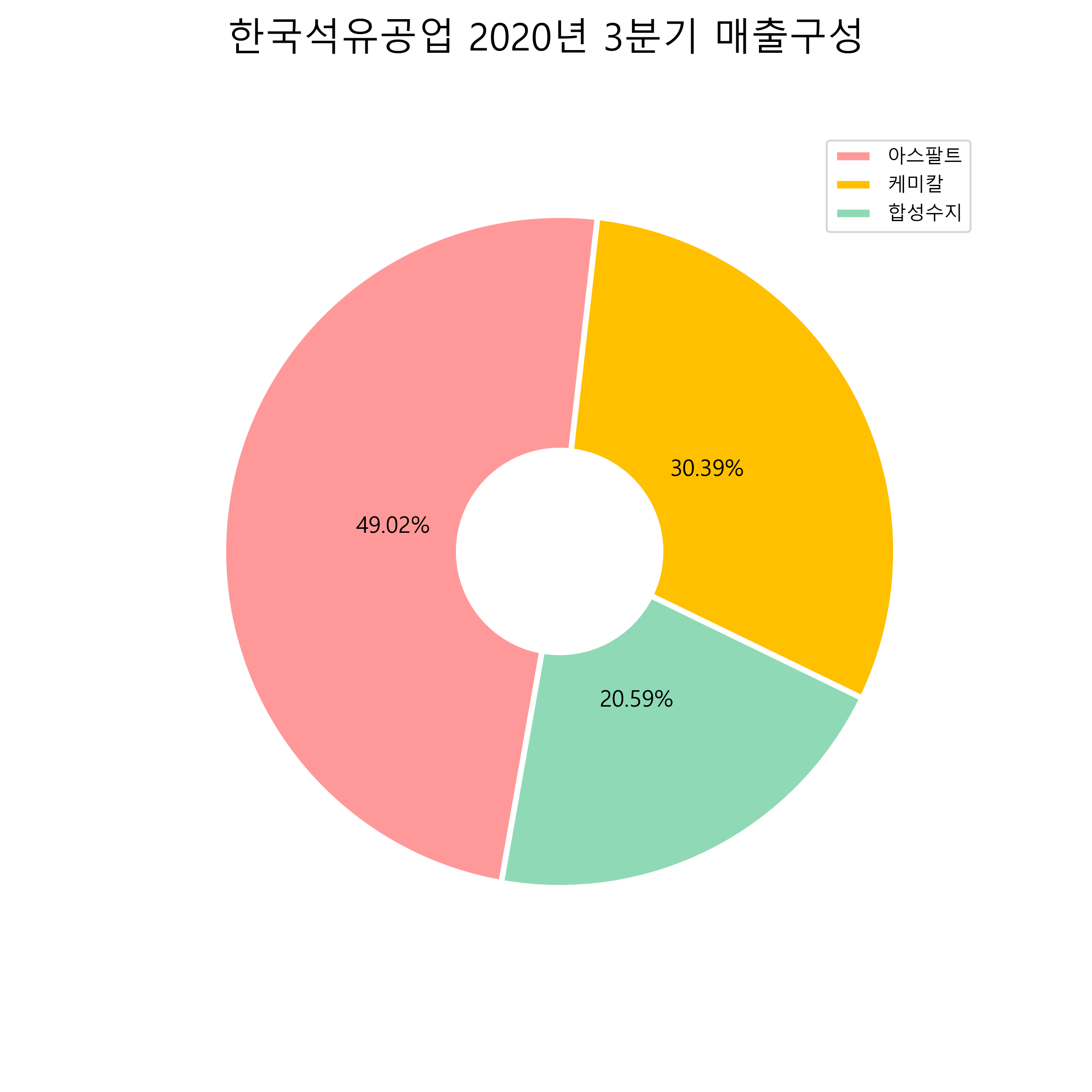 한국석유공업의 2020년 3분기 매출구성입니다.