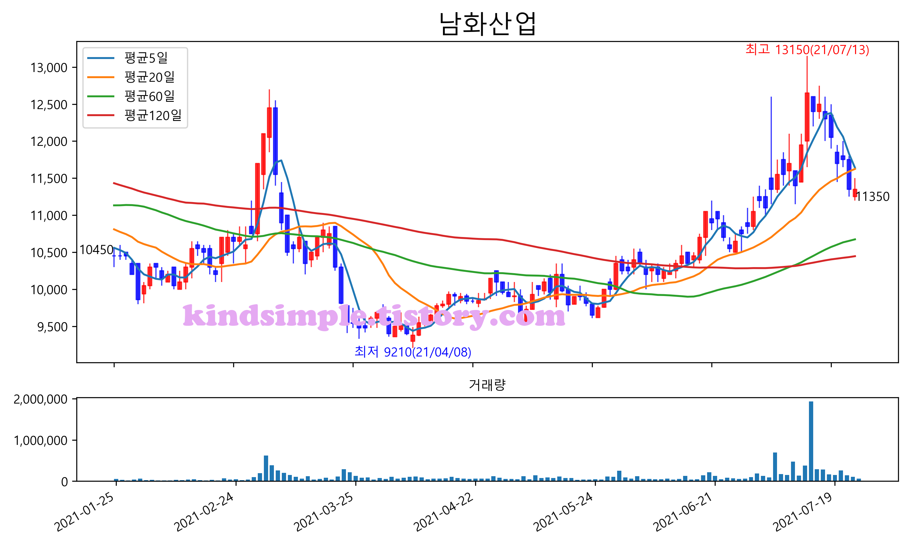 최근 6개월간 캔들차트 및 이동평균선입니다.